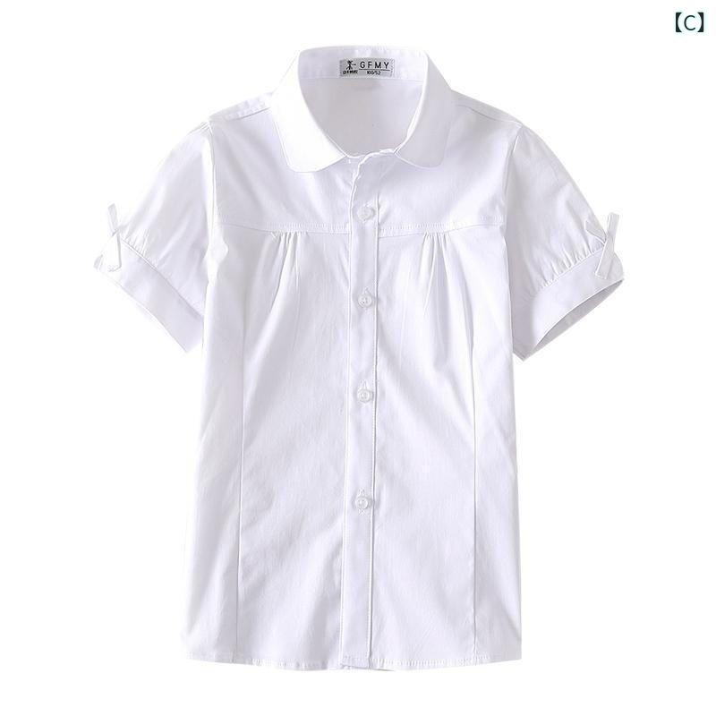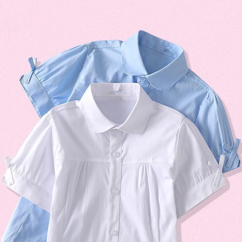 シャツ ガールズ キッズ 半袖 子供服 ブラウス 白 青 プリンセス スクール 発表会 110 120 130 140 150 160 170