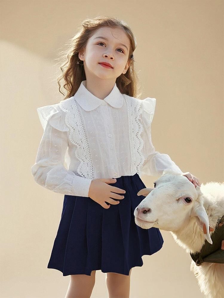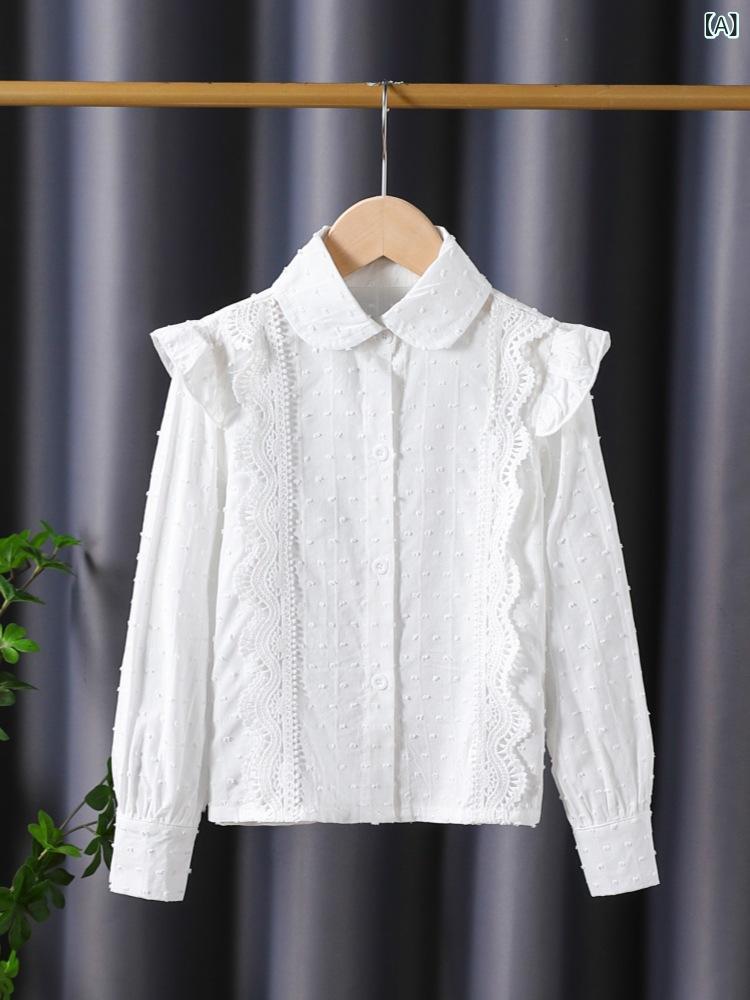 子供服 シャツ 女の子 長袖ブラウス 白 学院風 トップス 子供 キッズ ガールズ フォーマル 入園式 卒園式 発表会 結婚式 コットン100% 110cm 120cm 130cm 140cm 150cm 160cm