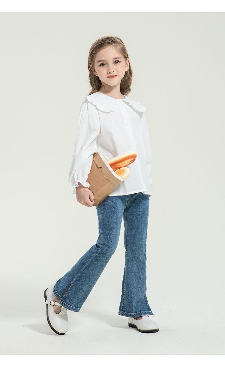シャツ ガールズ キッズ 子供服 トップス ブラウス 長袖 春物 白シャツ 綿100% 翻領 110cm 120cm 130cm 140cm 150cm 160cm