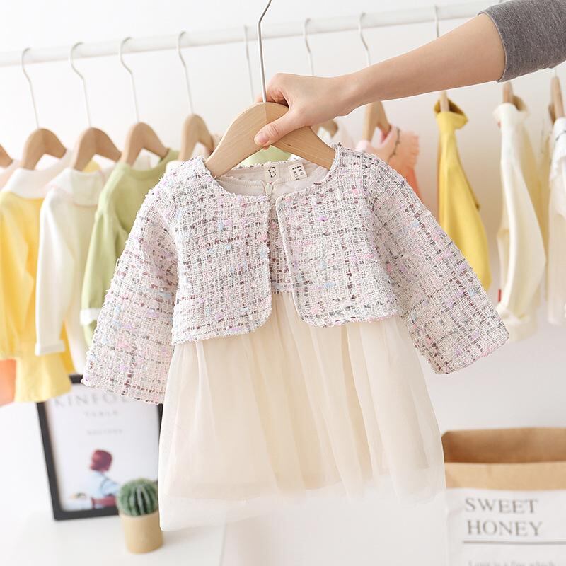 シャツ キッズ 長袖 韓国風 ベビー 小香風 カーディガン かわいい 子供服 春 秋 格子柄 コットン100% 80 90 100 110 ホワイト グレー
