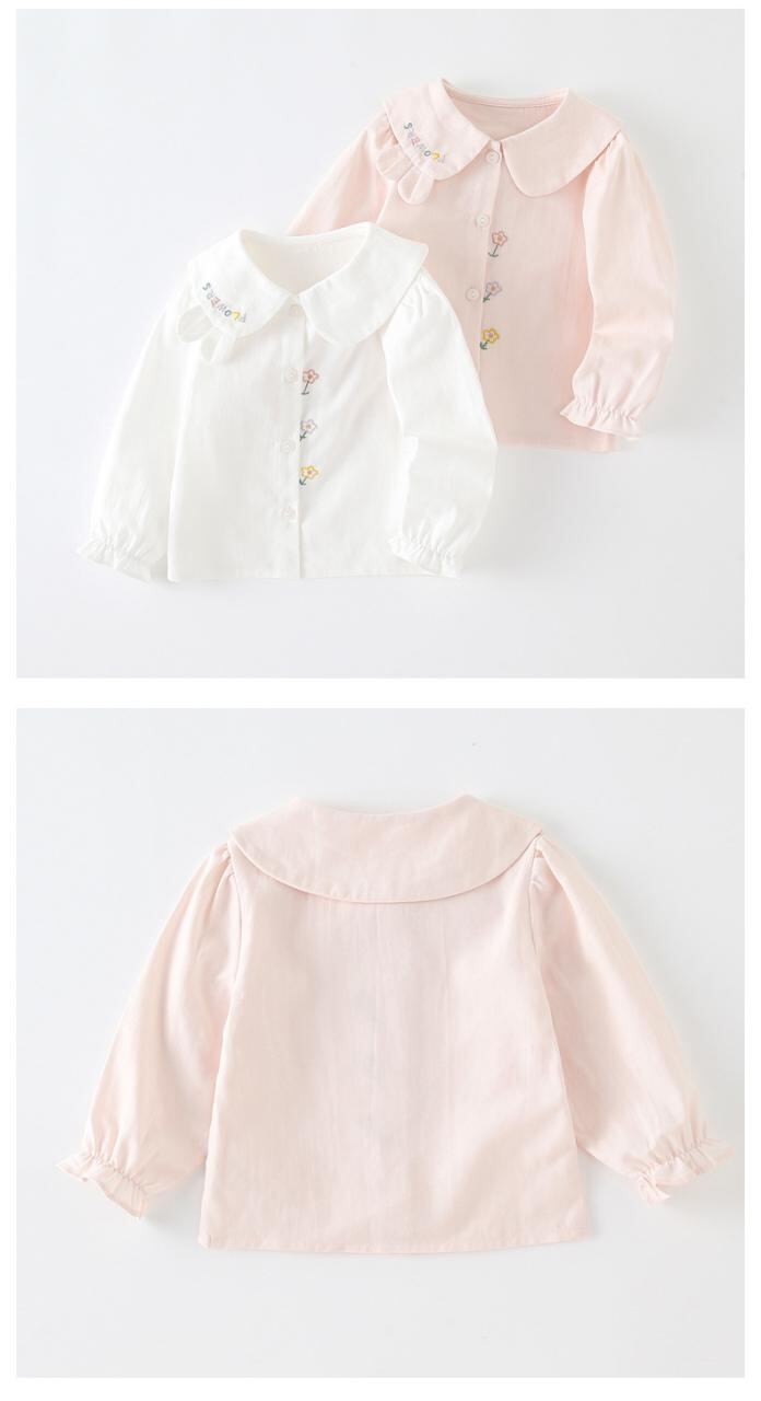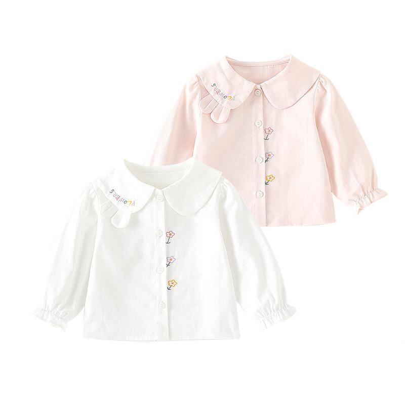 ベビー服 長袖シャツ 女の子 乳幼児 トップス 春秋物 コットン 襟付き かわいい おしゃれ ピンク ホワイト
