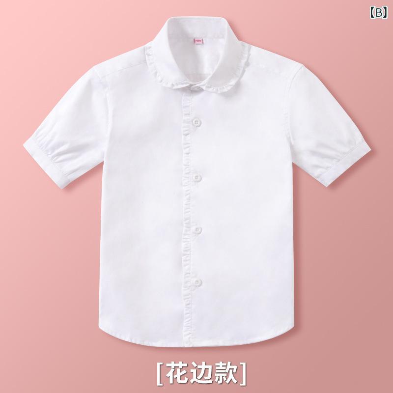 シャツ ガールズ 半袖 白 ブラウス 綿100% 夏 薄手 子供 小学生 中学生 白シャツ レース かわいい 花柄 襟付き 110cm 120cm 130cm 140cm 150cm 160cm 170cm 180cm