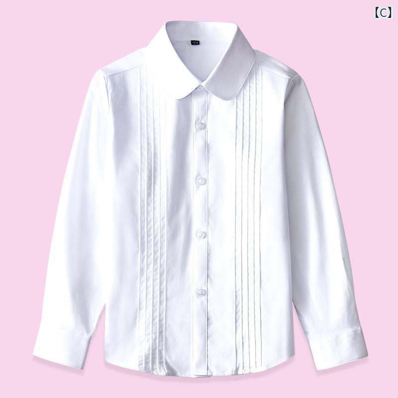 キッズ 女の子 シャツ ブラウス 長袖 白 無地 コットン 小学生 スクール 制服 発表会 演奏会 フォーマル 110 120 130 140 150 160 170 180 春秋