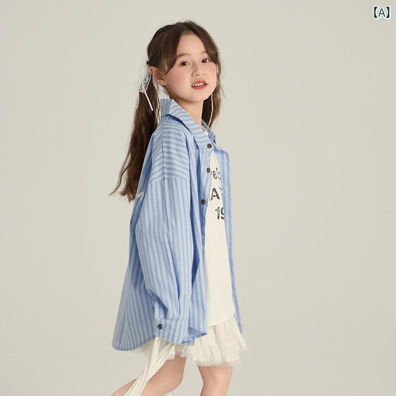 シャツ 女の子 ストライプ トップス 春物 蝶結び カジュアル 綿100% 長袖 普段使い 通学着