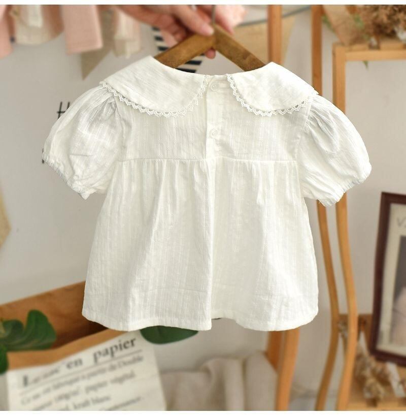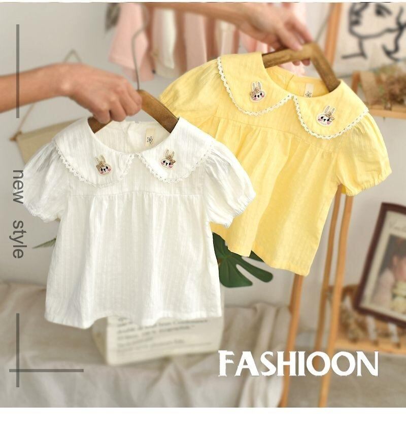 シャツ ベビー服 女の子 半袖 ブラウス 襟付き トップス 薄手 かわいい おしゃれ 夏 ホワイト イエロー 80 90 100 110 130