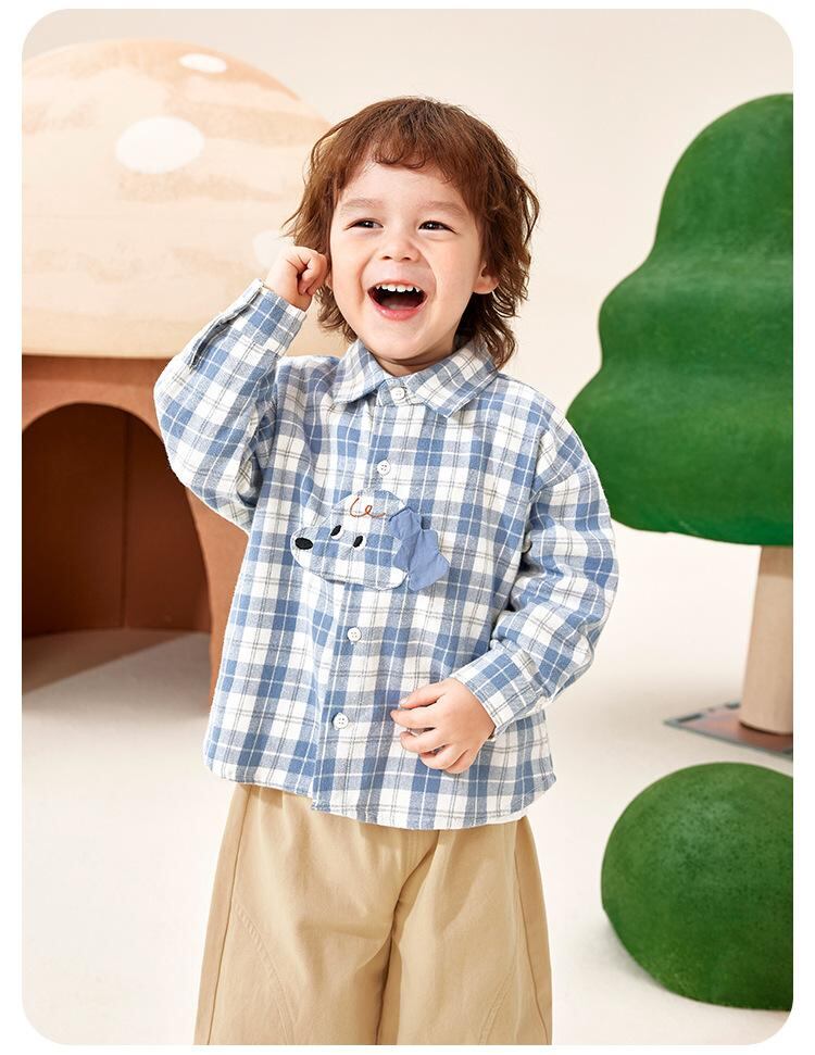 子供服 シャツ 長袖 春秋 男女兼用 ベビー チェック柄 トップス 幼児 普段着 綿100 黄緑 藍白 73cm 80cm 90cm 100cm 110cm 120cm