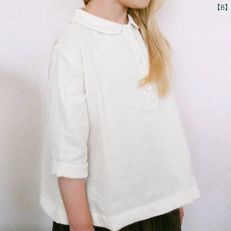 子供用シャツ 春秋 森ガール 綿麻 長袖 ブラウス 男女兼用 ベビー アースカラー トップス 襟付き コットン リネン かわいい 柔らかい