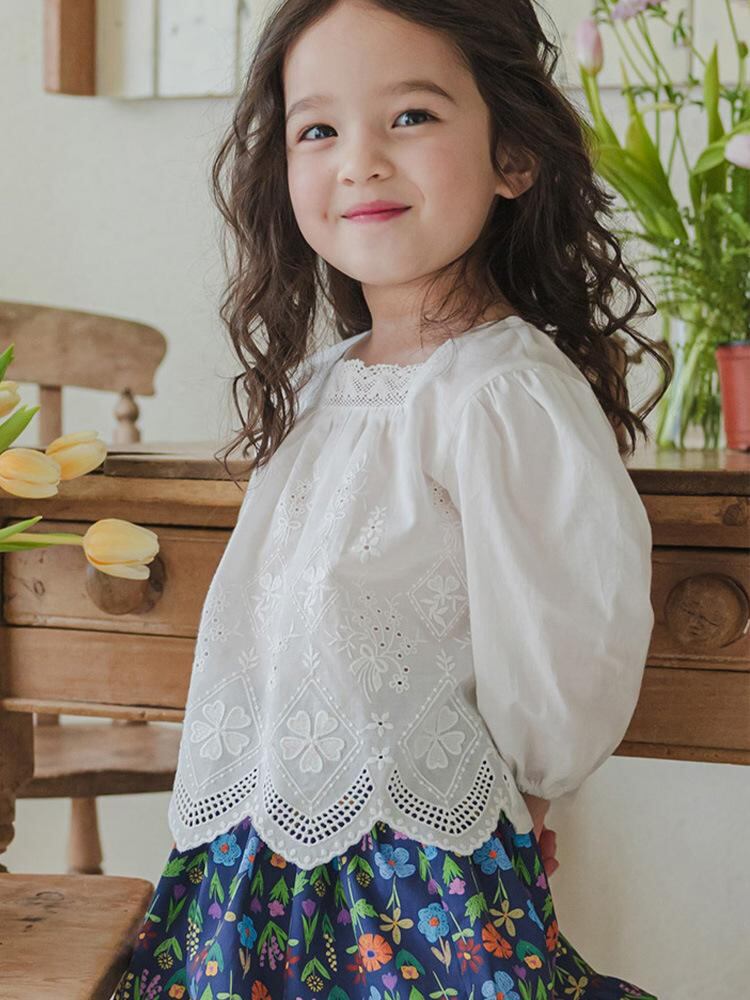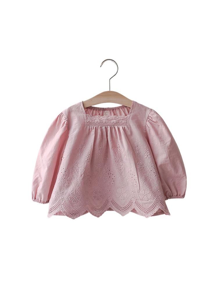 子供服 シャツ 女の子 いちご 刺繍 フリル コットン ブラウス 長袖 90cm 100cm 110cm 120cm 130cm 140cm 150cm 春秋 かわいい ガーリー