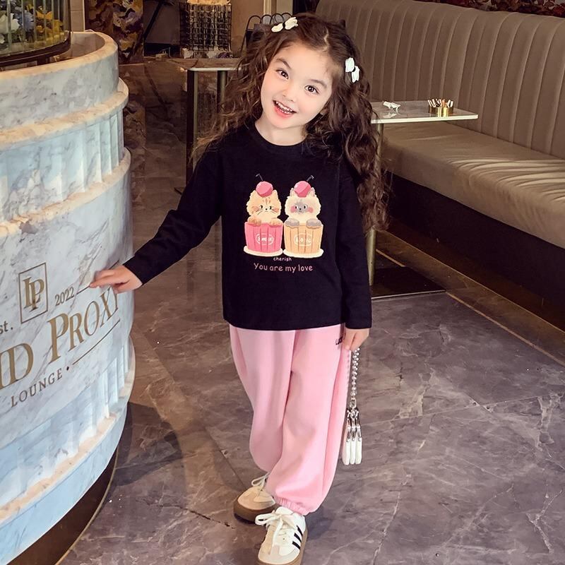 子供服 Tシャツ 長袖 春秋 女の子 トップス かわいい カートーン プリント 綿100% 吸湿性 通気性 ピンク ホワイト ブラック 90 100 110 120 130 140