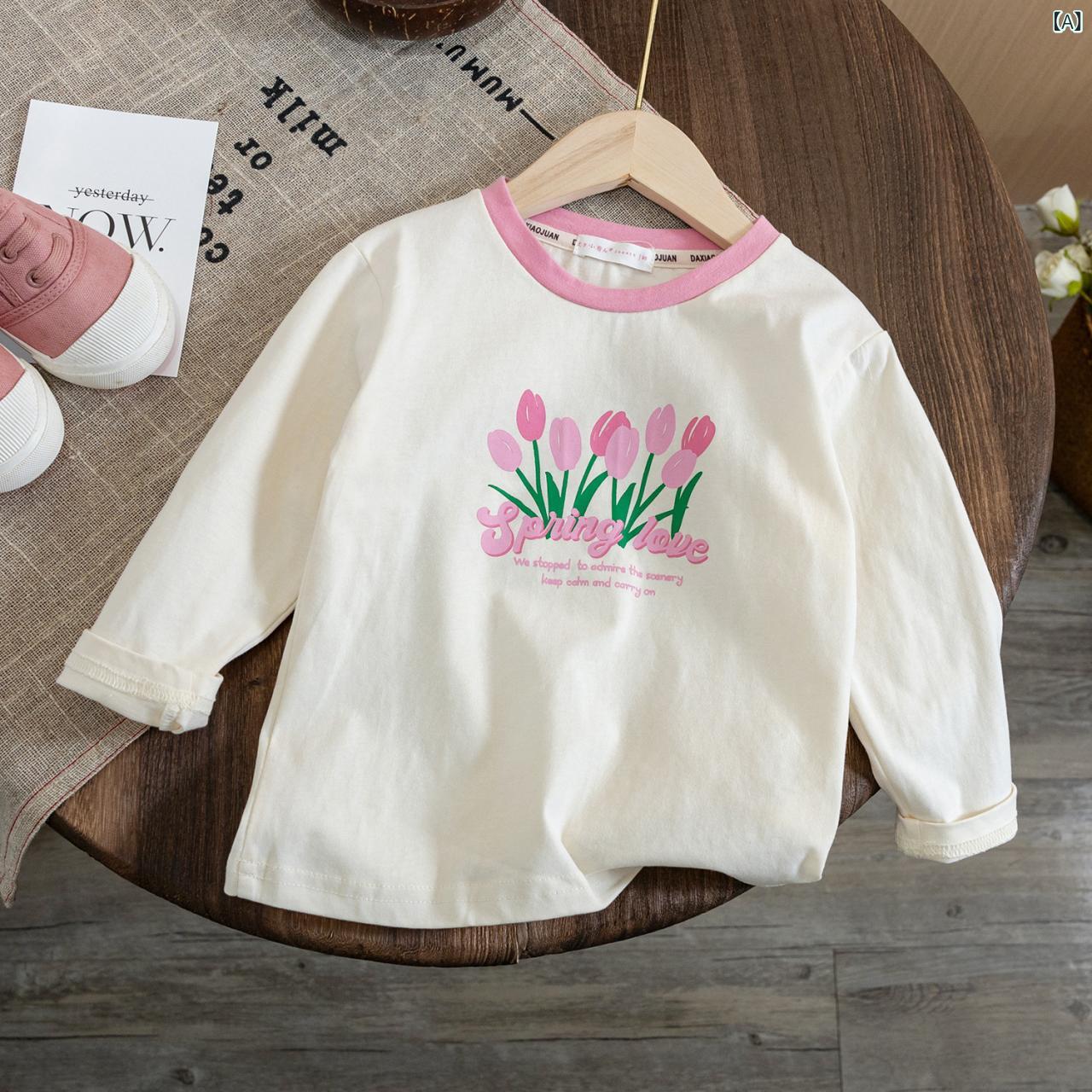 子供服 Tシャツ 長袖 春秋 女の子 ベビー トップス 綿100% カトゥーン プリント 吸湿速乾 80 90 100 110 120 130 ピンク系 アイボリー