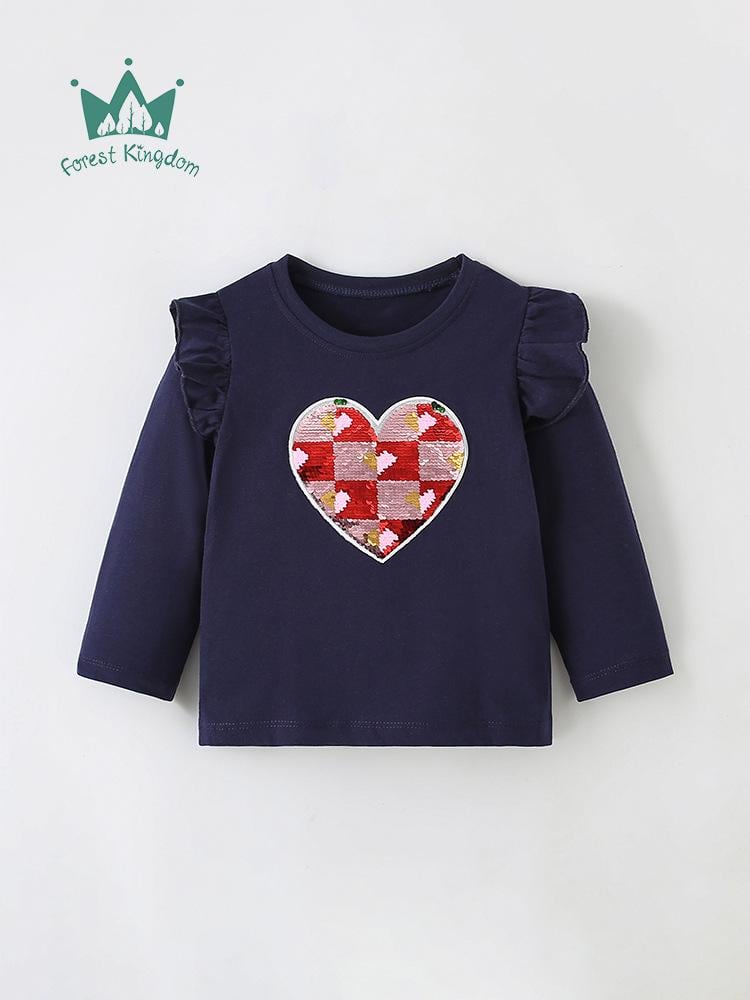 子供服 Tシャツ 長袖 秋冬 女の子 ベビー トップス カットソー 綿100% 通園 普段着 かわいい ハート柄 プリント