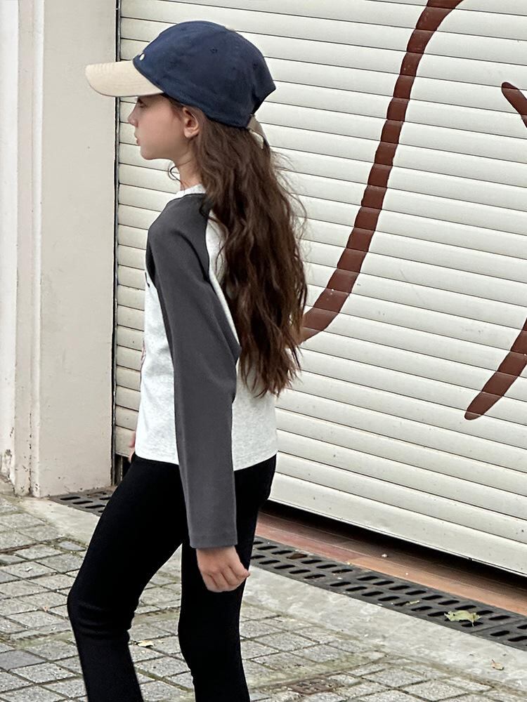 キッズ Tシャツ 女の子 長袖 春秋 大童サイズ 子供服 トップス カットソー 綿100% 通学 普段着 かわいい カートゥーン プリント 深灰色 130 140 150 160 170