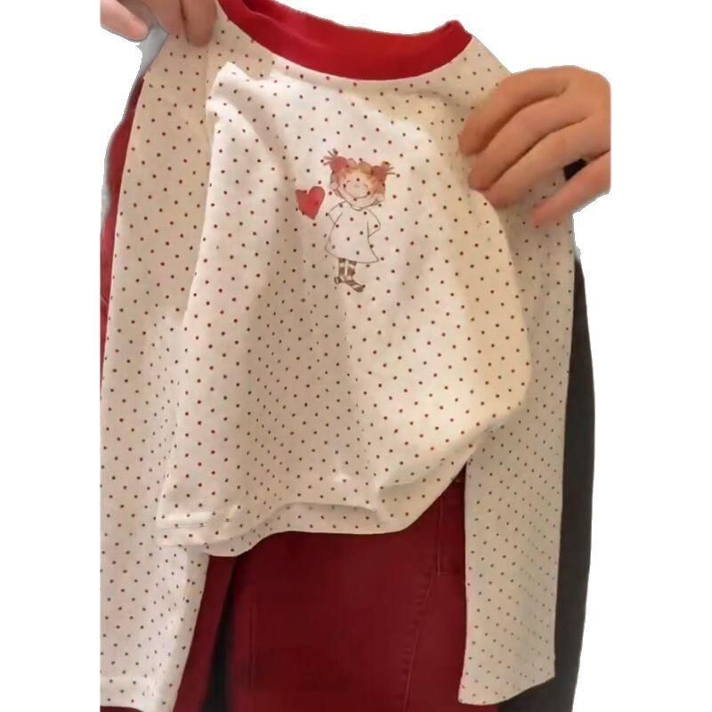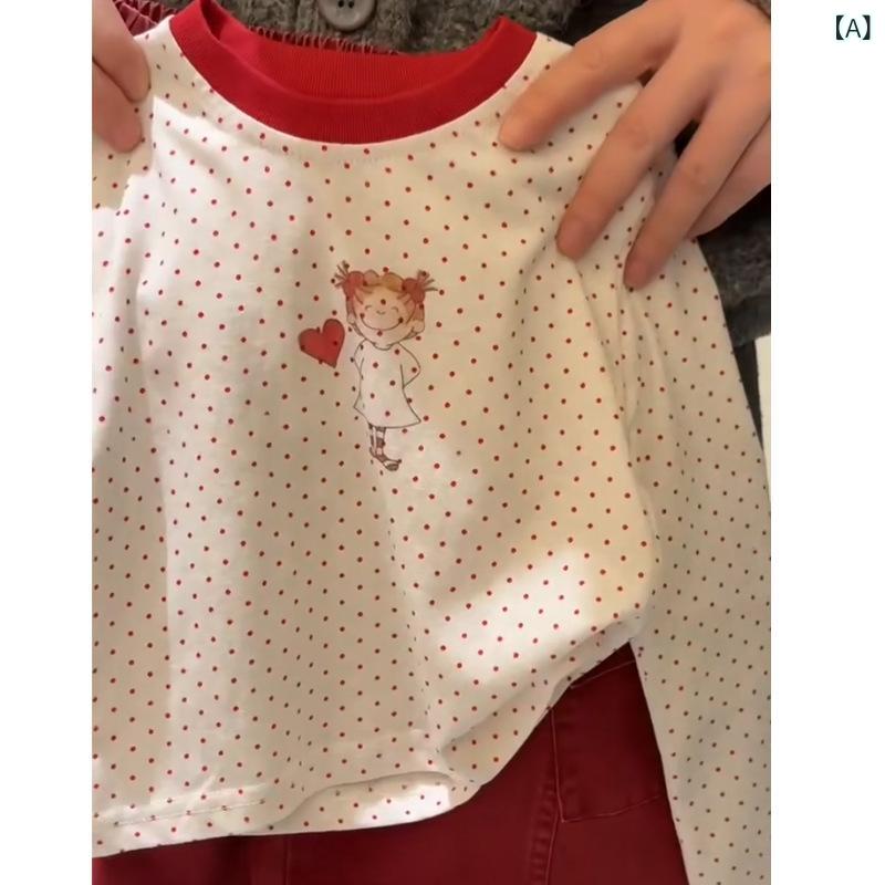 子供服 Tシャツ 女の子 ベビー 長袖 カットソー 綿100% 吸湿速乾 カートゥーン プリント ドット柄 ミルクホワイト ピンク系 春秋