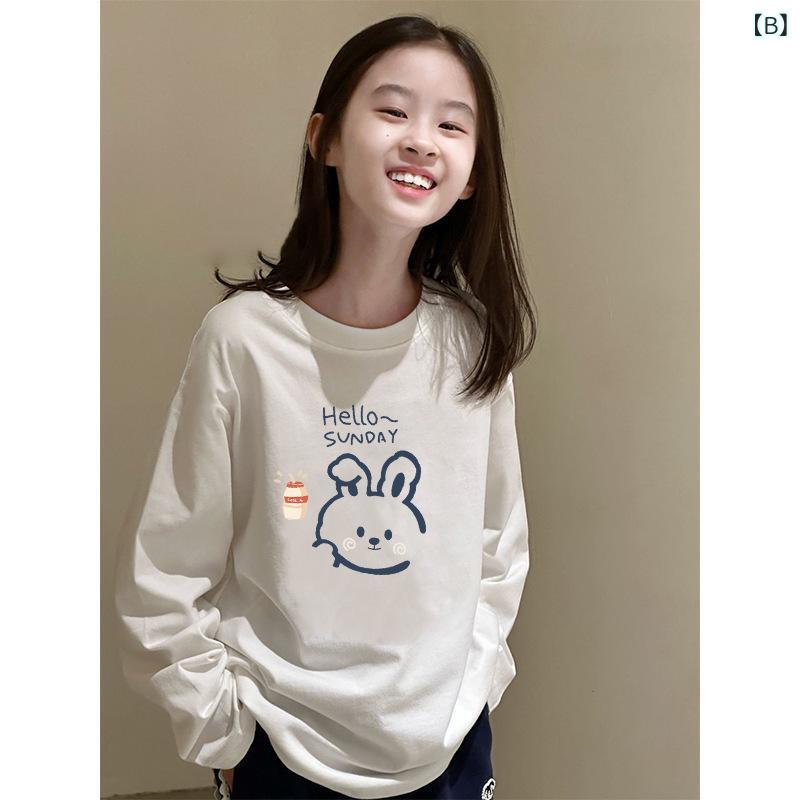 Tシャツ ガールズ 子供服 長袖Tシャツ 春秋 トップス カットソー プリント 中 বড় 童 女の子 かわいい 綿100% 通学 普段着