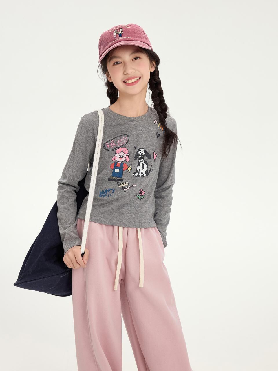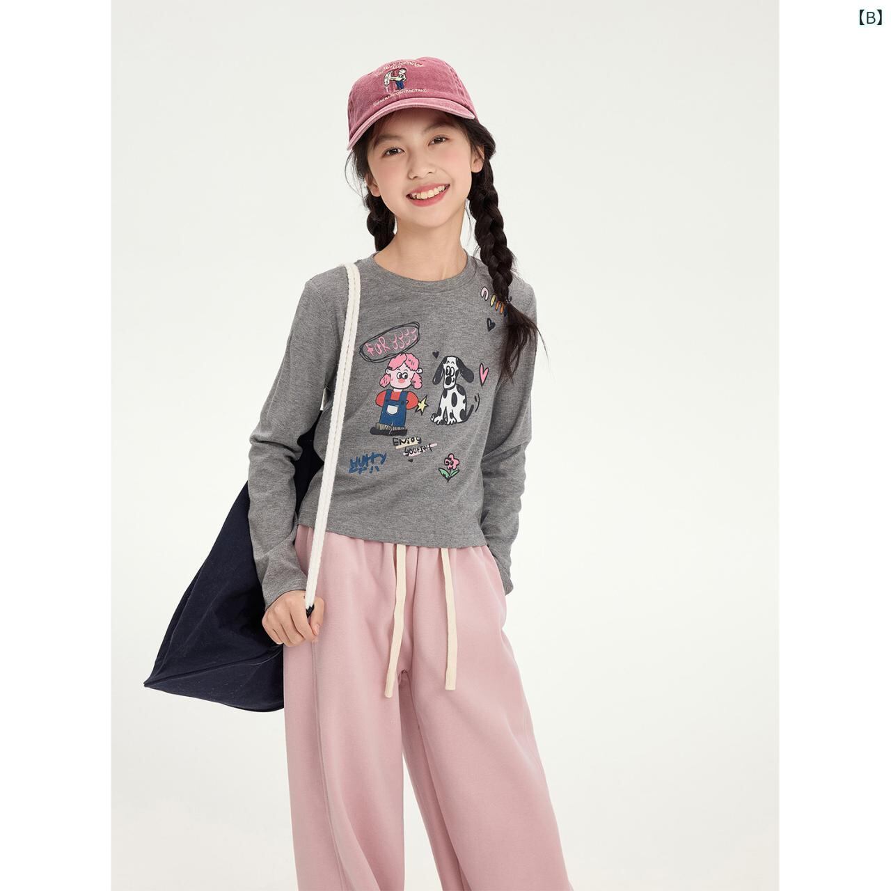 子供服 Tシャツ 長袖 春秋 女の子 かわいいプリント カットソー トップス ガールズ 丸首 コットン 普段着 部屋着 ピンク系 グレー