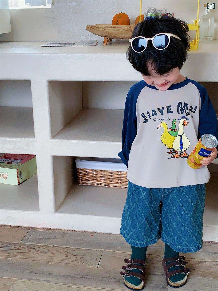 子供用Tシャツ 長袖 男女兼用 春秋 カットソー かわいい 韓国風 保育園 幼稚園 トップス 青 紫 綿100%