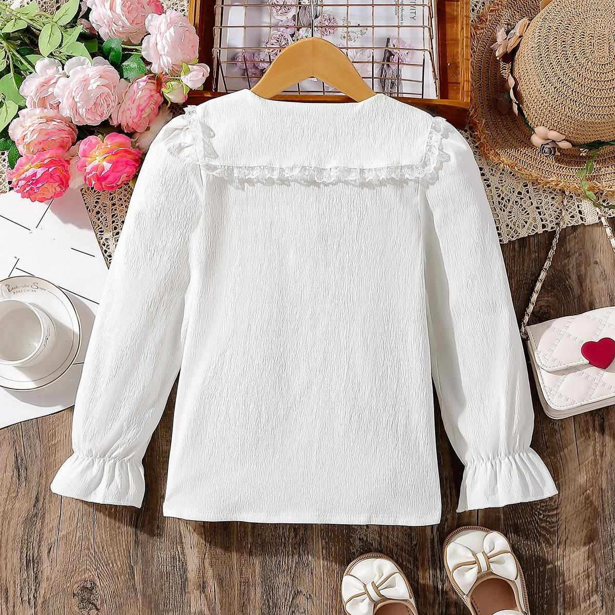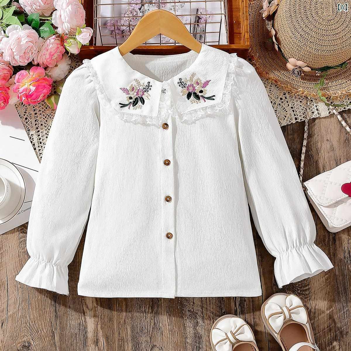 子供服 シャツ 女の子 長袖 トップス 襟 花柄 刺繍 かわいい 韓国風 カジュアル 普段着 発表会 お出かけ