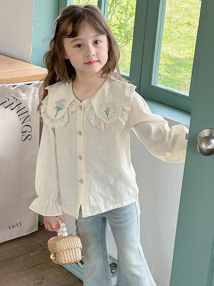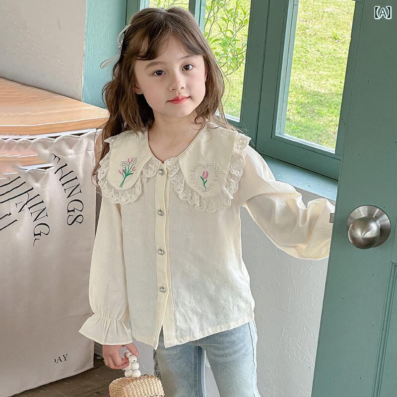 子供服 シャツ 女の子 長袖 全綿 トップス ブラウス 襟付き 花柄 春秋 かわいい 韓国風 キッズ ガールズ 女児 幼稚園 小学生 通学着 お出かけ 100 110 120 130 140 150 160cm