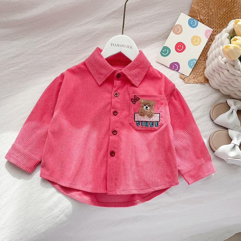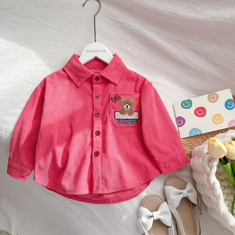 子供服 シャツ 女の子 長袖 春秋 コーデュロイ 襟付き カジュアル トップス 80cm 90cm 100cm 110cm 120cm ピンク系