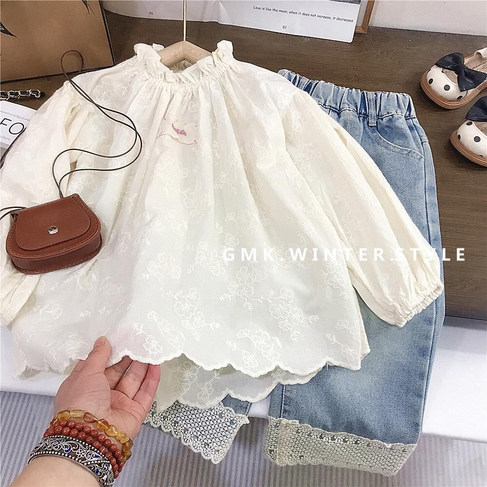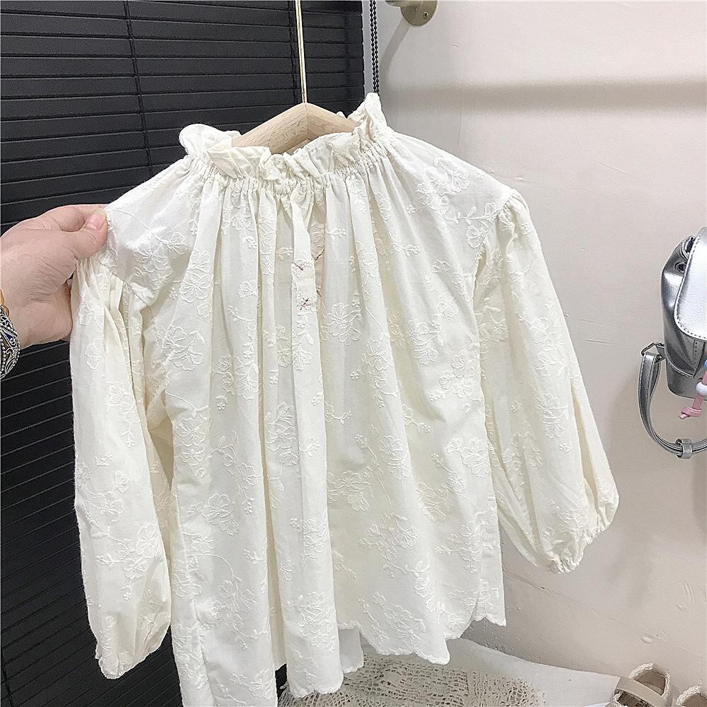 子供服 シャツ 春秋 長袖 韓国風 女の子 ブラウス 丸襟 刺繡 コットン 上着 キッズ トップス 90cm 100cm 110cm 120cm 130cm 140cm