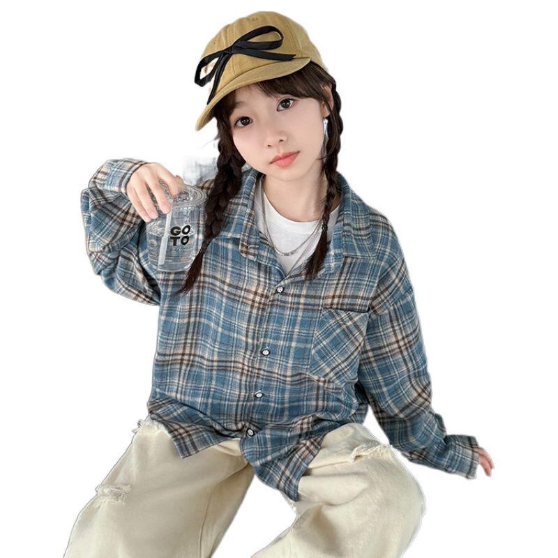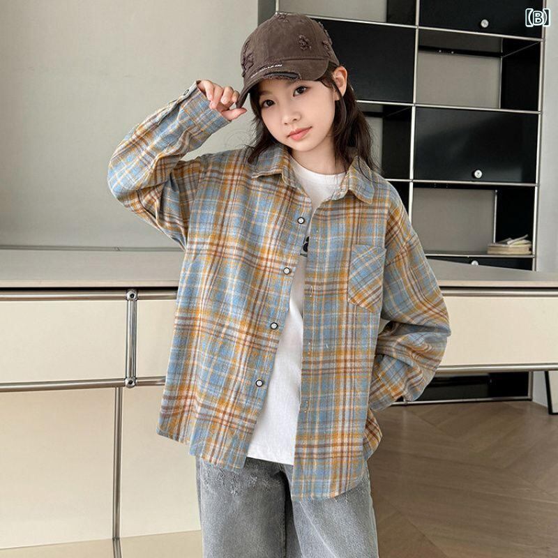 シャツ ガールズ 春秋 格子柄 トップス 長袖 普段使い 120cm 130cm 140cm 150cm 160cm 170cm 聚酯繊維