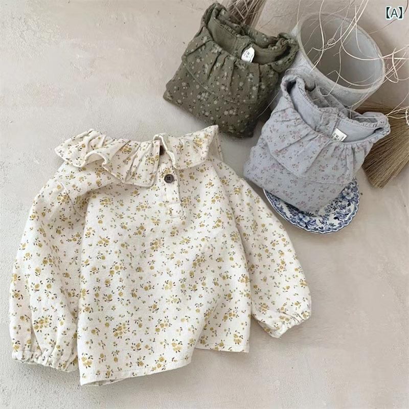 子供服 シャツ ベビー服 長袖 春秋 赤ちゃん 幼児 花柄 襟付き かわいい ゆったり 綿100% トップス ブラウス 73CM 80cm 90cm 100cm