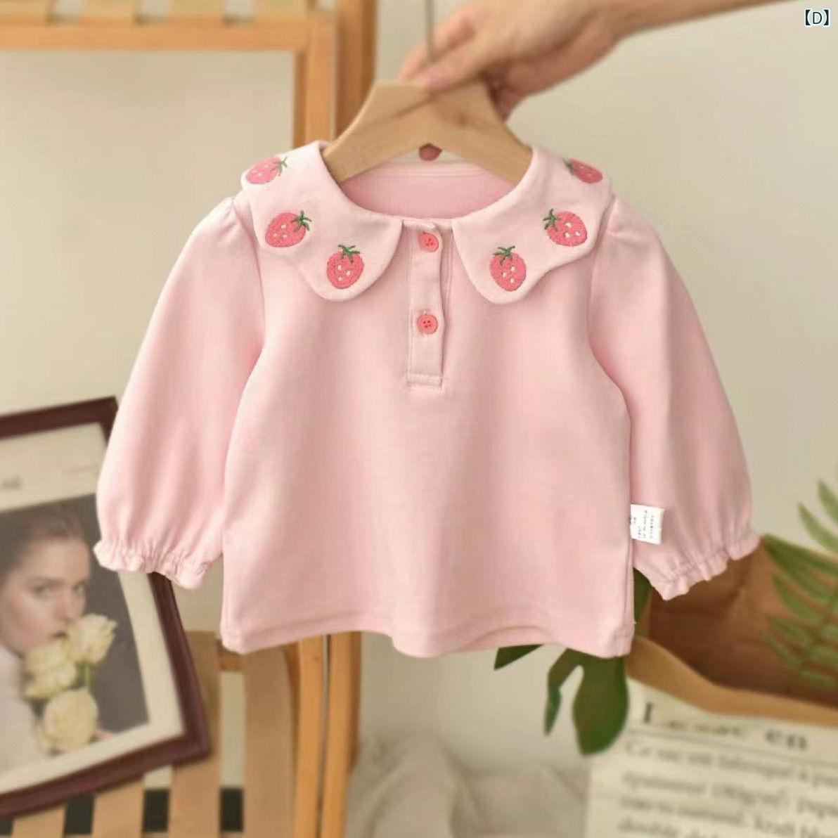 ベビー服 赤ちゃん用 韓国風 トップス 秋冬 長袖 シャツ 女児 乳幼児 子供服 かわいい 襟付き コットン