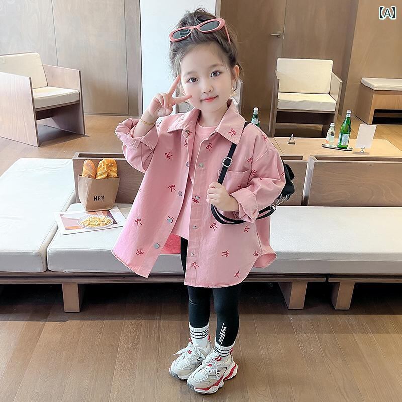 シャツ ガールズ 子供服 長袖ブラウス リボン 襟付き トップス 女の子 春秋 かわいい おしゃれ ミドル丈 ロングスリーブ 綿混紡 ピンク系 アイボリー