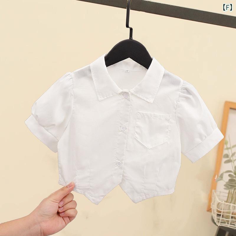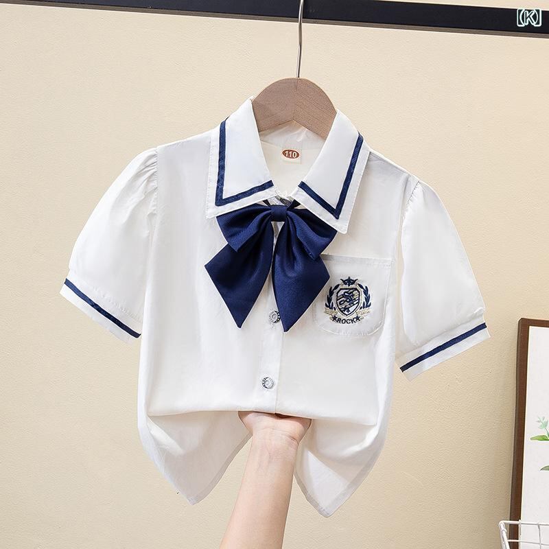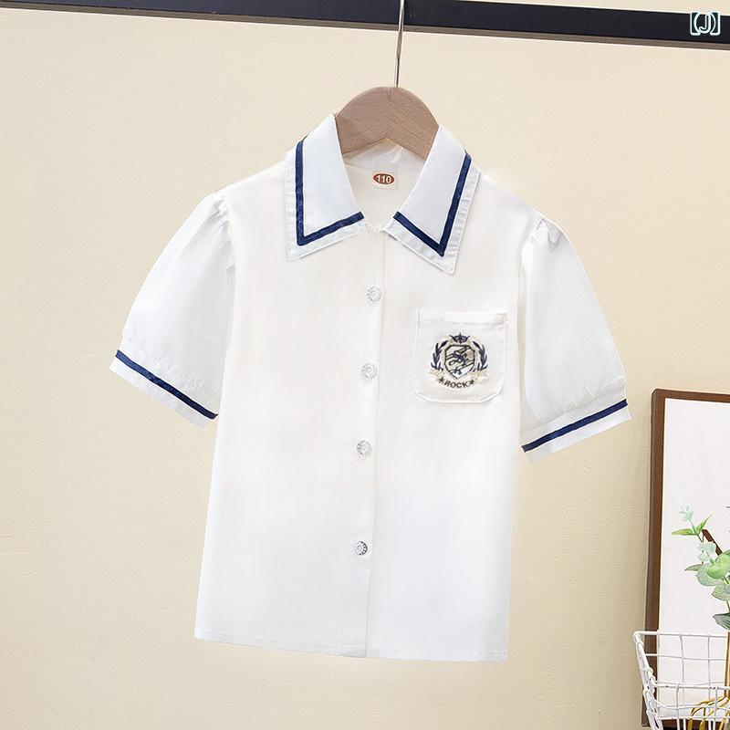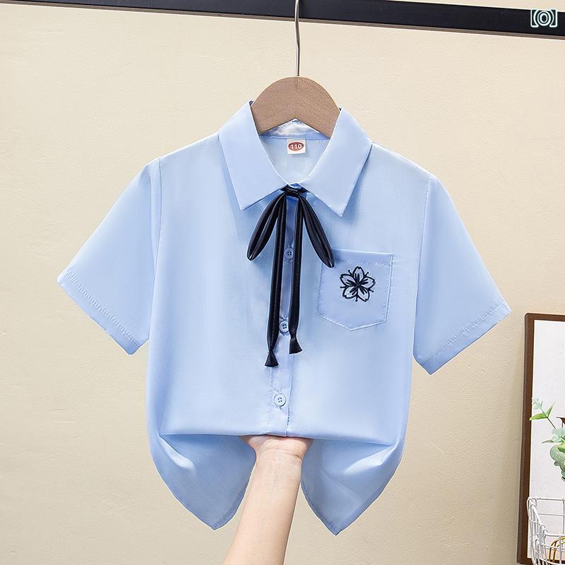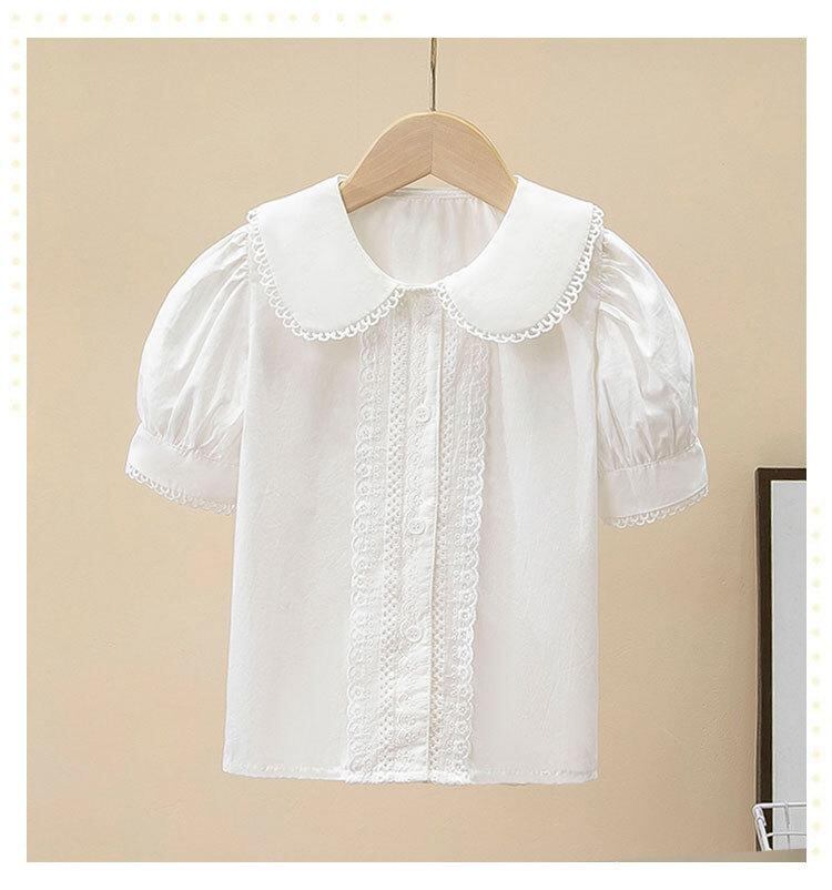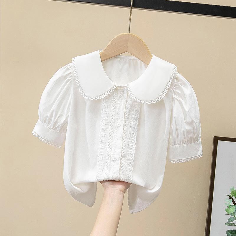 シャツ キッズ 花柄 レース フリル襟 日本風 白 かわいい 半袖 薄手 綿100% トップス ブラウス 子供服