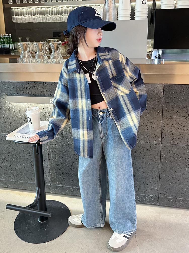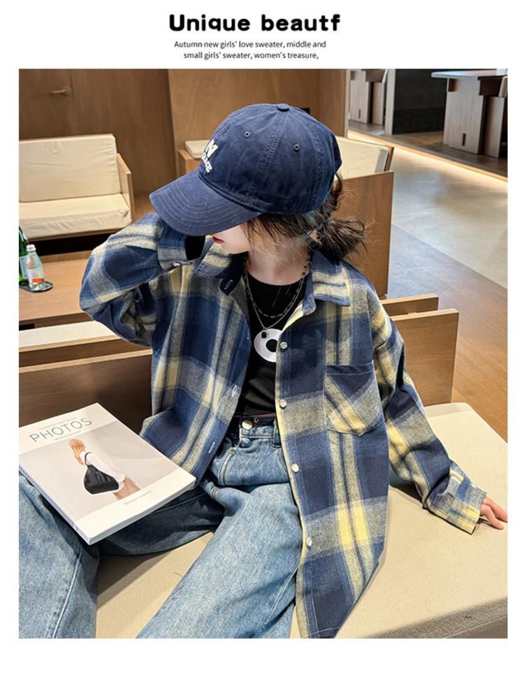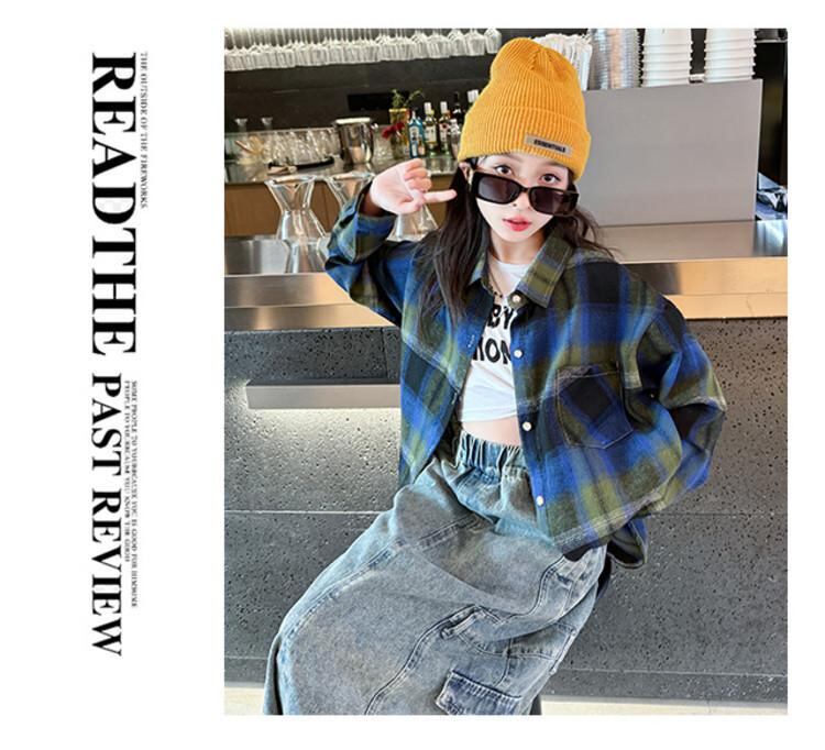 シャツ キッズ 長袖 子供服 格子柄 春秋 薄手 アウター 刺繡 綿100% 藏青色 グリーン