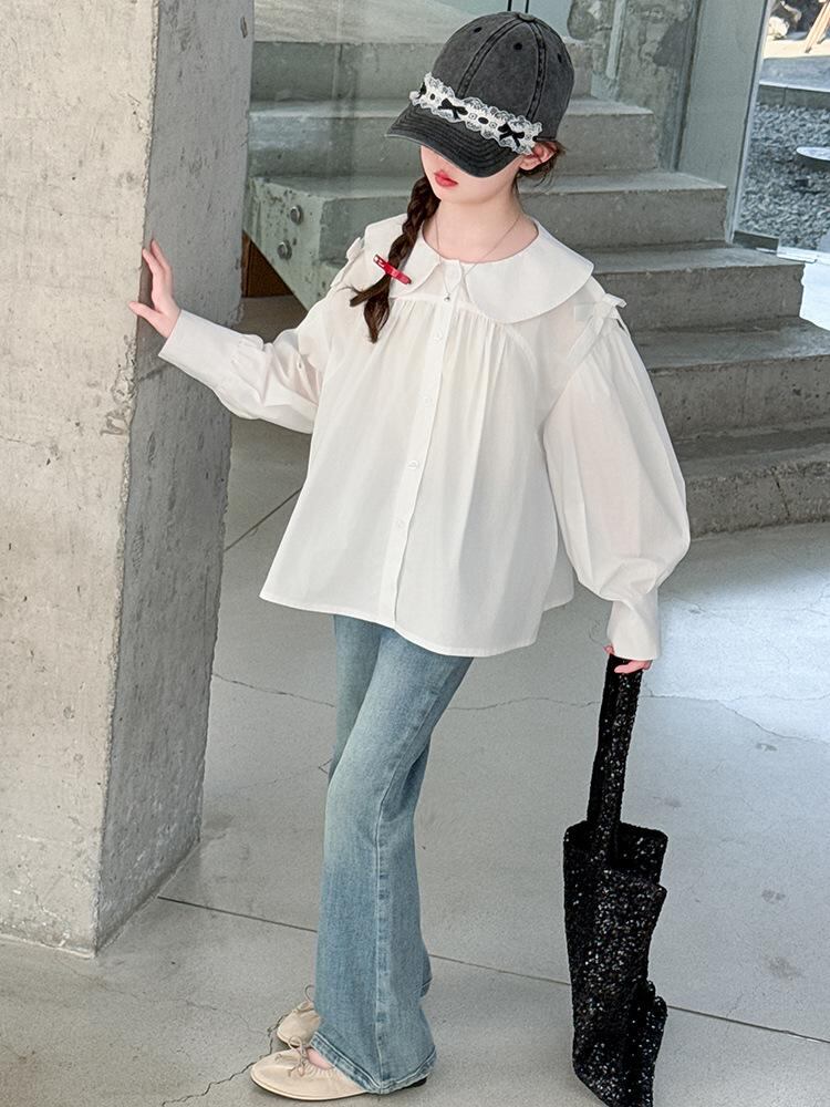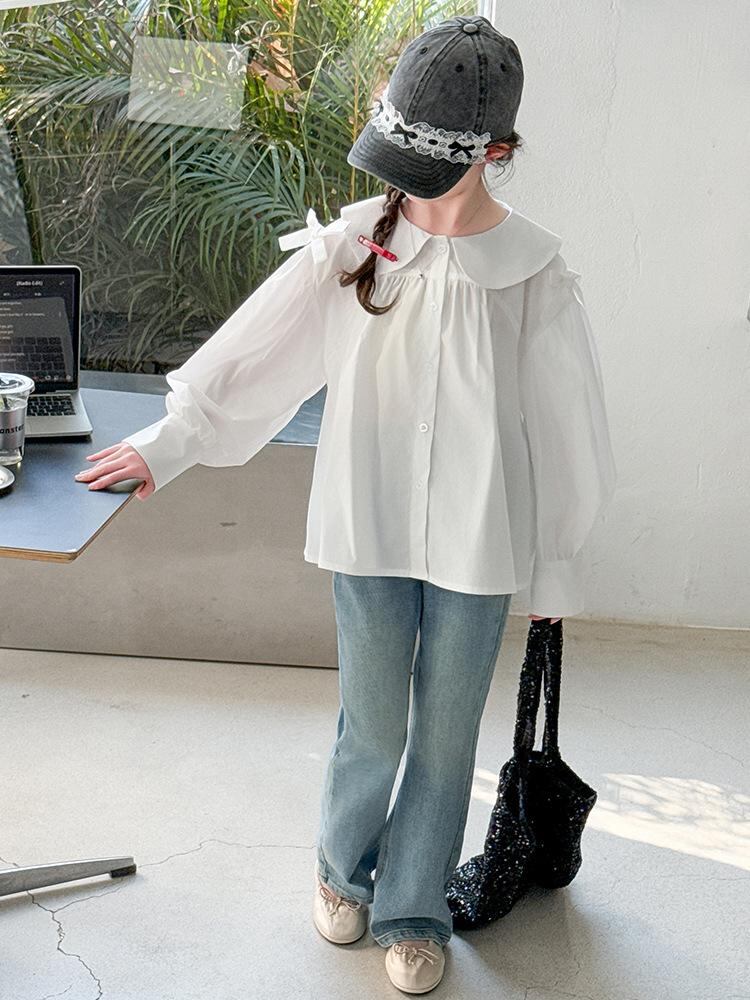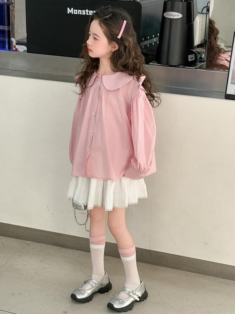 シャツ 女の子 キッズ ブラウス 春秋 長袖 コットン 無地 襟付き かわいい ガーリー トップス 通学着 韓国風 ピンク系 ホワイト 120cm 130cm 140cm 150cm 160cm 170cm