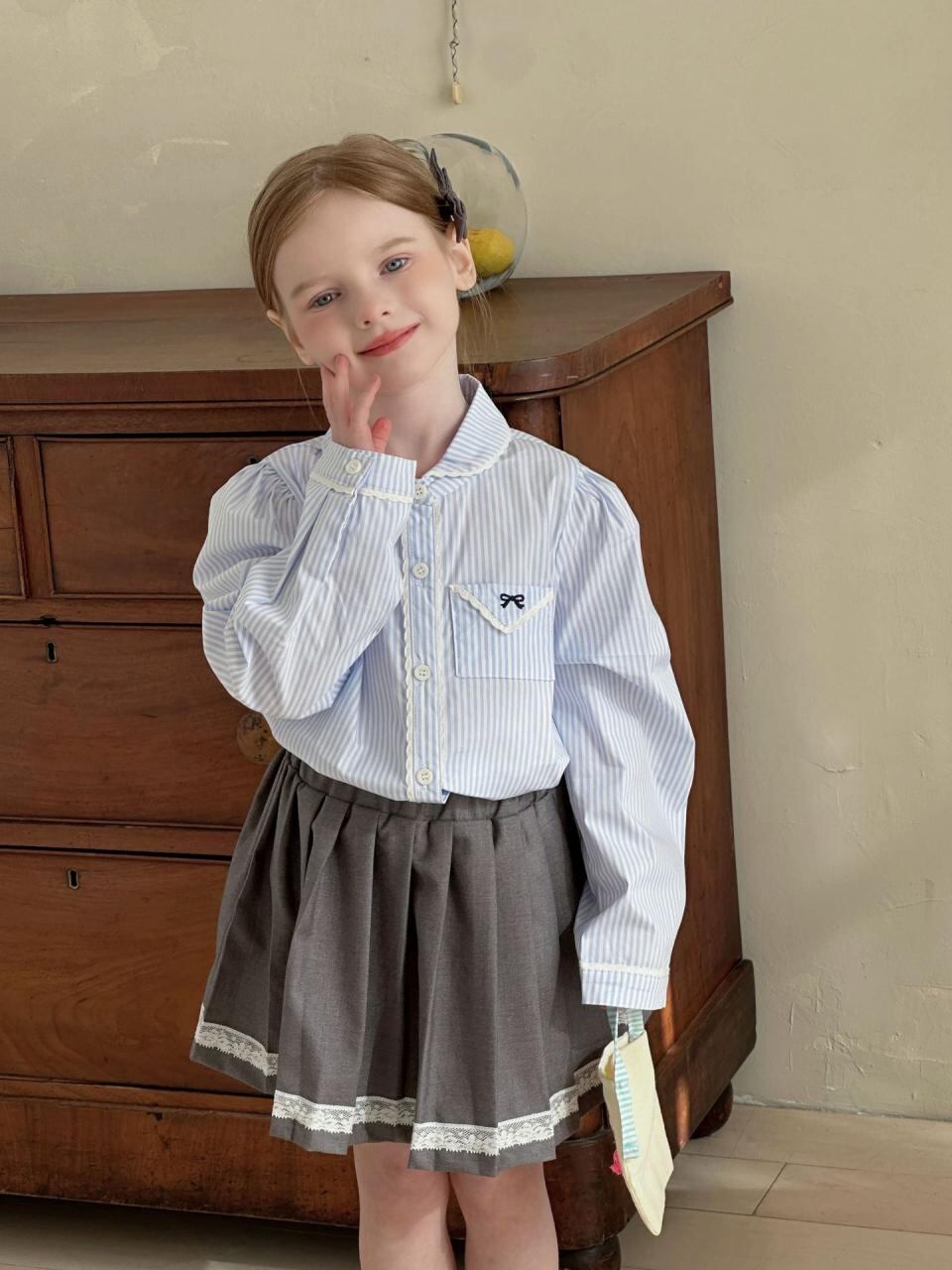 子供服 シャツ 女の子 ストライプ ブラウス 長袖 春秋 韓国風 花柄 刺繍 襟付き トップス 入園式 発表会 かわいい 普段着 通学着