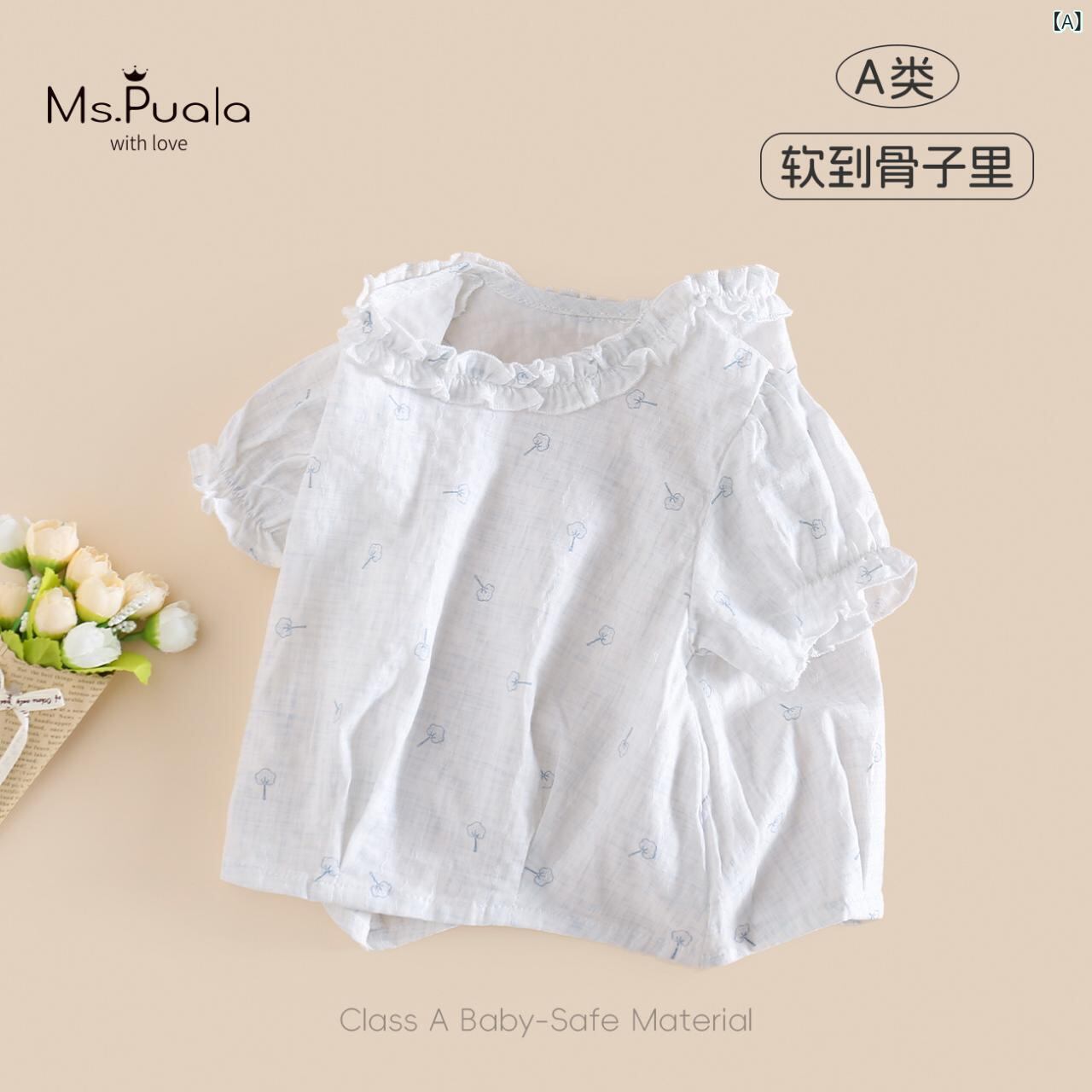 子供服 シャツ 春夏 ベビー 女児 トップス 半袖 丸首 コットン 花柄 柔らかい 肌に優しい 快適 普段着