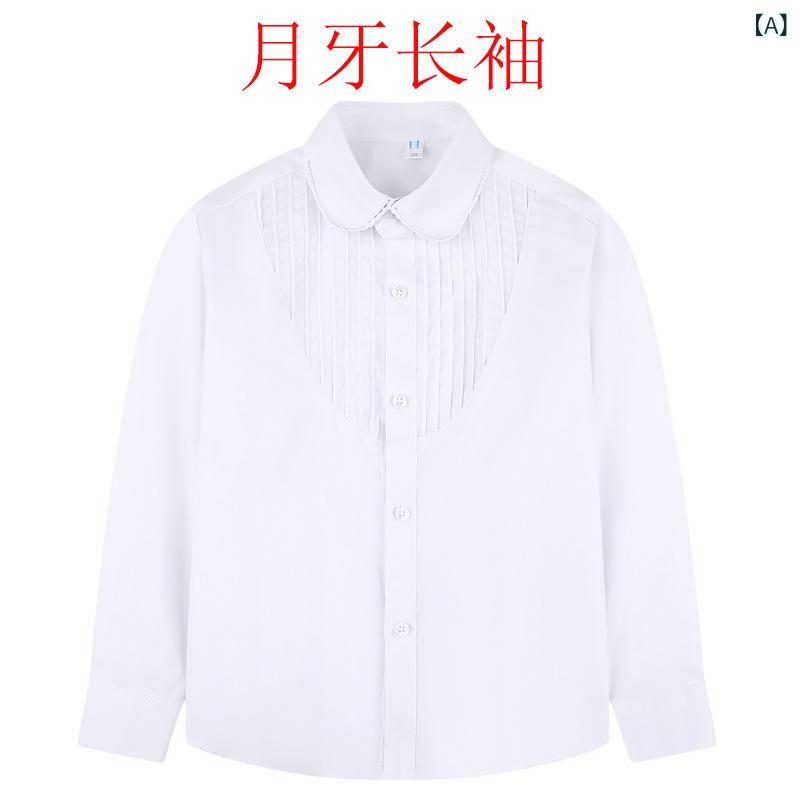 子供服 シャツ 女の子 長袖 袖口 レース フリル 丸襟 ブラウス 白シャツ 子供 学生 制服 通学着 綿100% 学院風