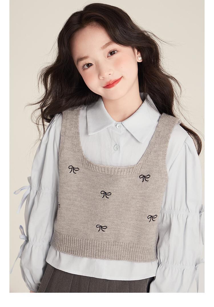 シャツ キッズ 女の子 蝶ネクタイ リボン 長袖 トップス ブラウス 水色 コットン