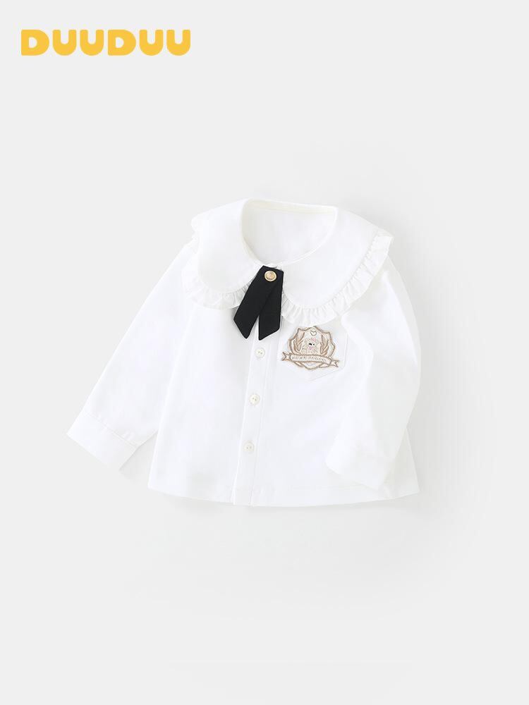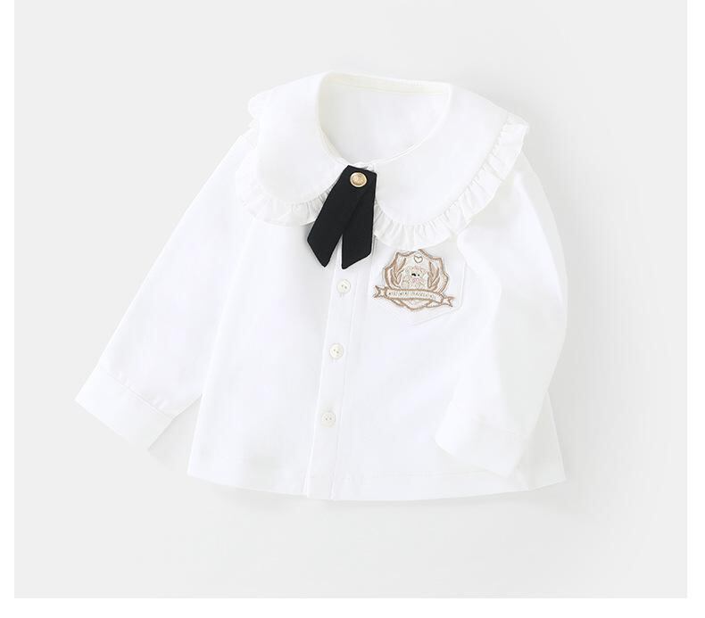 シャツ ガールズ 長袖 コットン 春秋 韓国風 子供服 白 無地 80cm 90cm 100cm 110cm 120cm