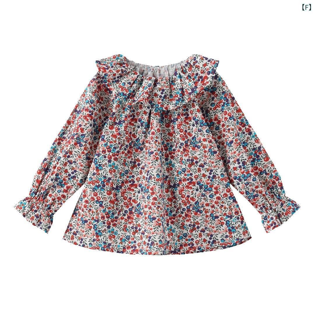 シャツ 女児 ベビー 花柄 フリル襟 長袖 トップス 春秋 幼児 赤ちゃん かわいい ガーリー 綿100% 日本製 薄手 普段着 お出かけ ベージュ ピンク系 レッド ブルー系