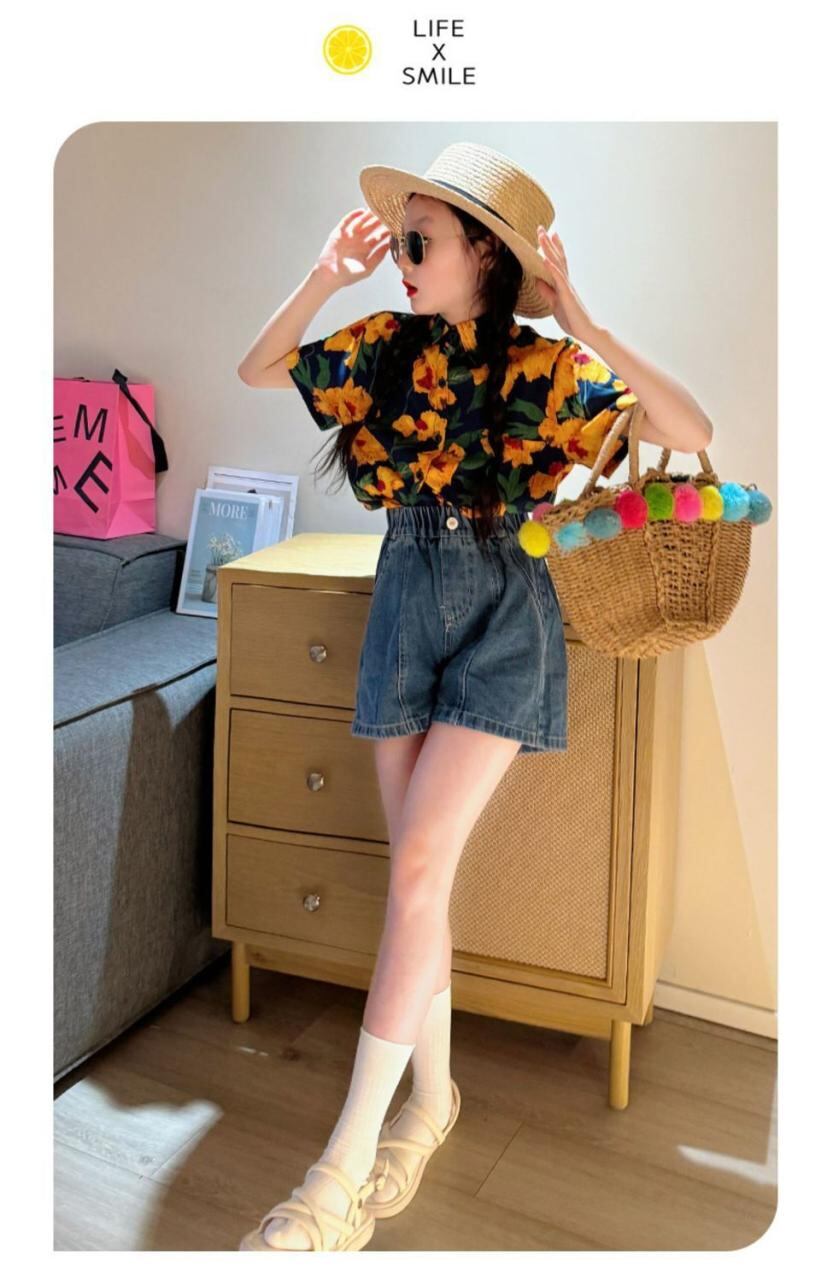 シャツ 子供服 女の子 半袖 花柄 レトロ トップス かわいい 普段使い おしゃれ 90cm 100cm 110cm 120cm 130cm 140cm 150cm
