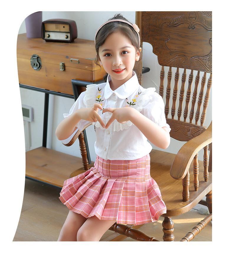 シャツ キッズ 半袖 刺繍 花柄 レース フリル 襟付き コットン 白 ブラウス かわいい ガーリー 春夏
