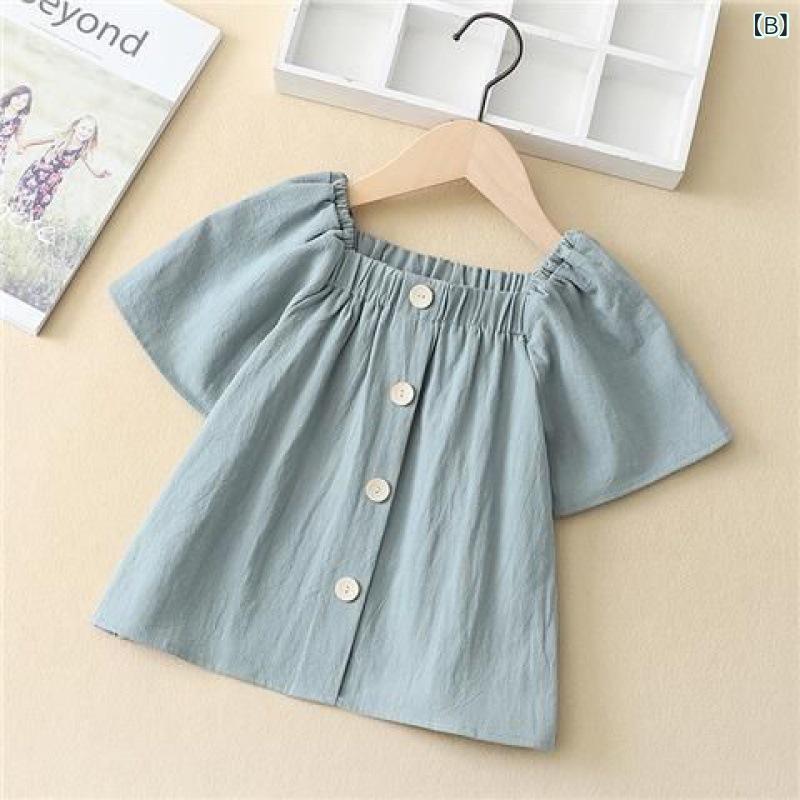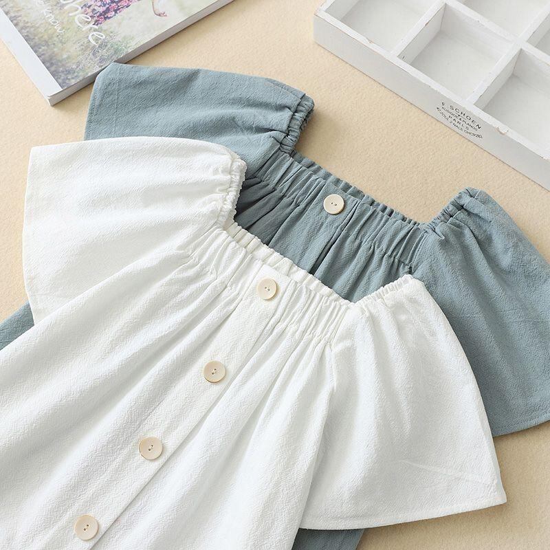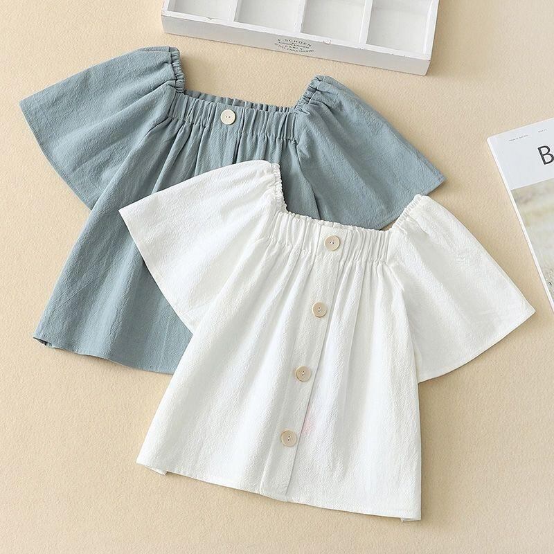 シャツ 子供 女の子 半袖 夏 トップス 綿100% 薄手 無地 シンプル ブラウス 普段着 おしゃれ かわいい 8歳 9歳 10歳 11歳 12歳 13歳 14歳