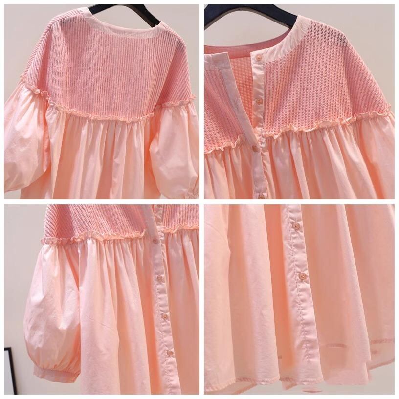 シャツ 女の子 半袖 子供服 ブラウス トップス ラウンドネック 無地 かわいい ガーリー フェミニン ピンク系 オフホワイト コットン