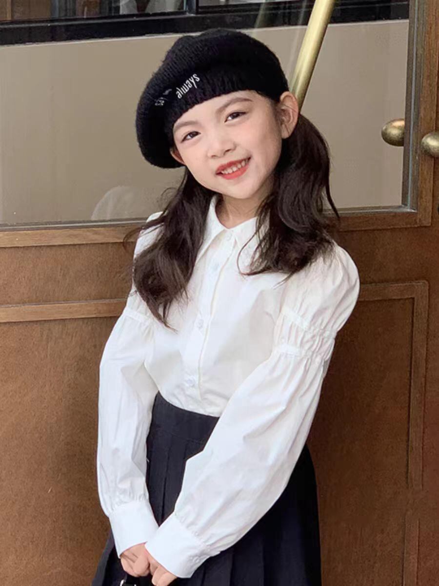 シャツ キッズ 長袖 春秋 女の子 子供服 立襟 コットン100% 韓国風 潮范 かわいい 白色 トップス 普段使い