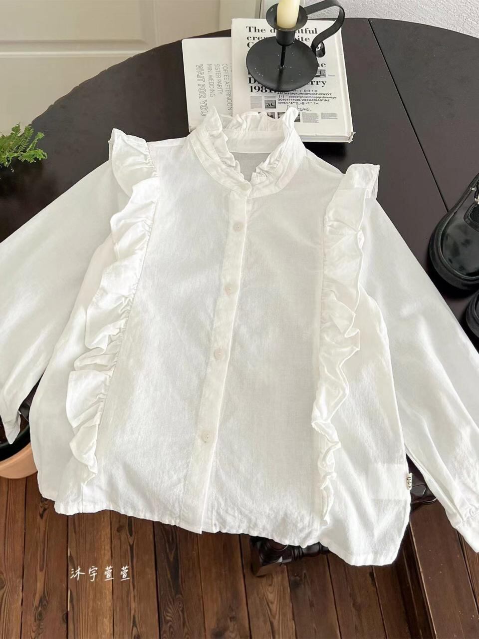 子供服 シャツ 女の子 フリル襟 ブラウス 長袖 韓国風 デザイン キッズ ガールズ かわいい おしゃれ コットン 春