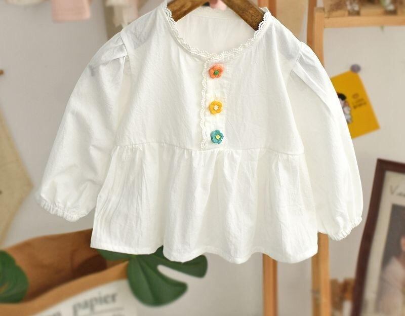 シャツ 女児 ベビー 春秋 長袖 丸首 かわいい 幼児 トップス 綿80% 白色 80 90 100 110 120