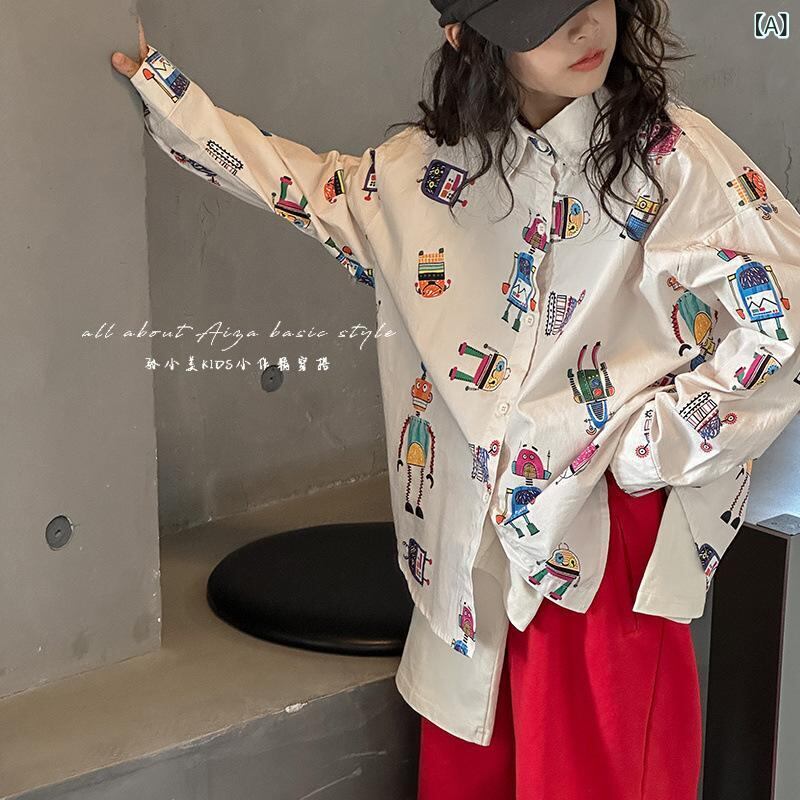 シャツ ガールズ 子供服 薄手 グラフィック トップス 長袖 カーディガン 夏 大 童 おしゃれ コットン