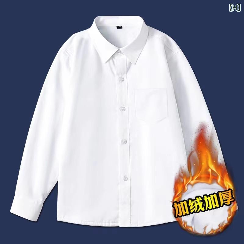 シャツ キッズ 長袖 純綿 子供 白シャツ 裏起毛 春秋 小学生 中学生 男の子 女の子 スクールシャツ フォーマル 発表会 冠婚葬祭
