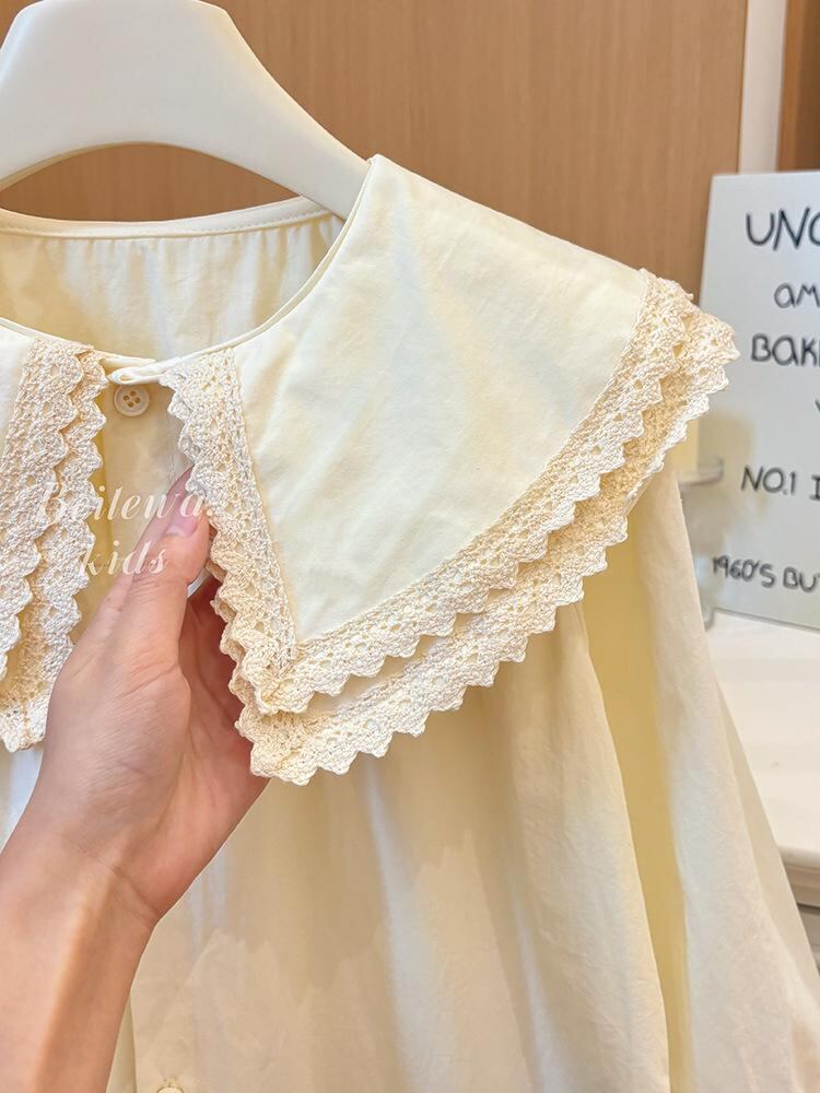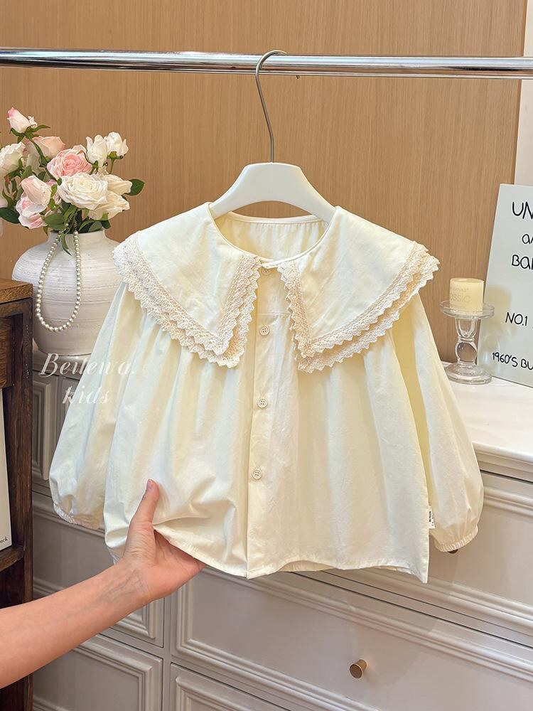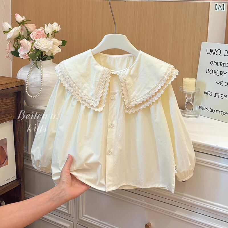 シャツ キッズ 長袖 春秋 かわいい おしゃれ 子供 女の子 女児 幼児 トップス 綿100% 通園 通学 ベージュ 90 100 110 120 130 140 | Kneebaファッションショップ
