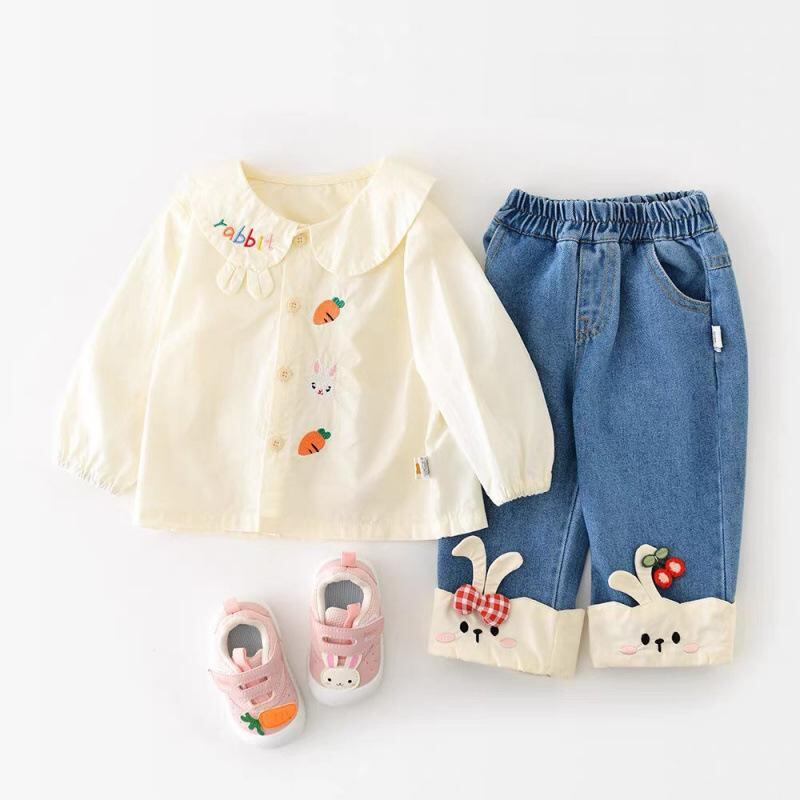 シャツ キッズ 長袖 ベビー 春秋 かわいい おしゃれ コットン トップス 女の子 小学生 ベージュ バニー 刺繍