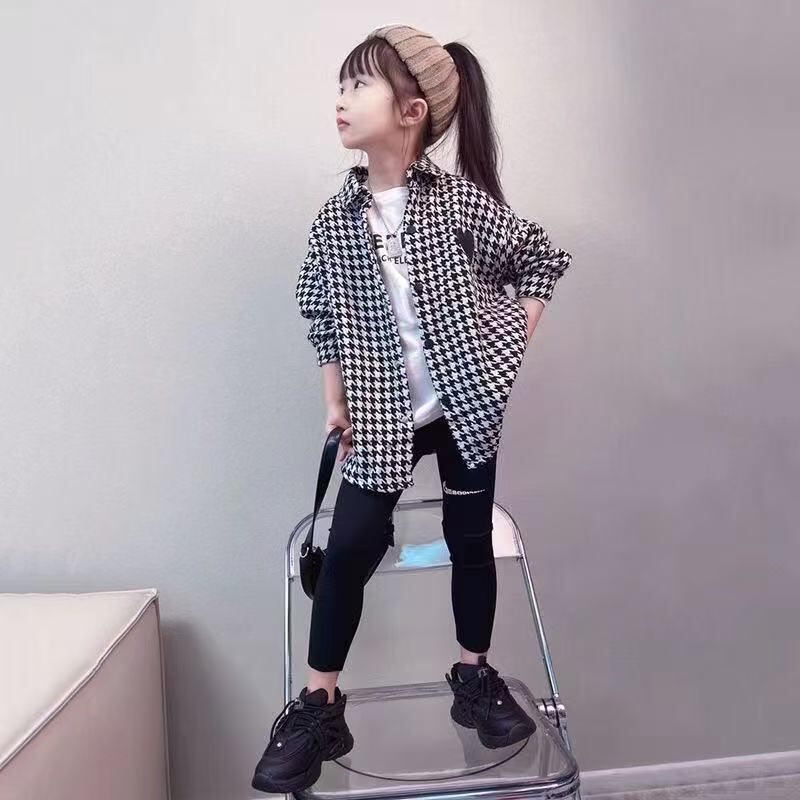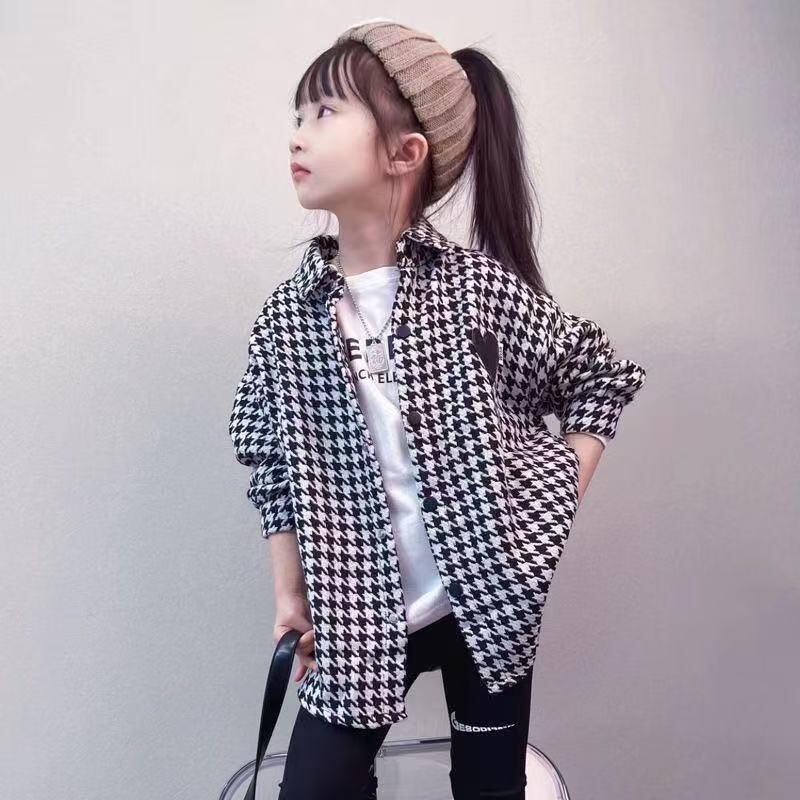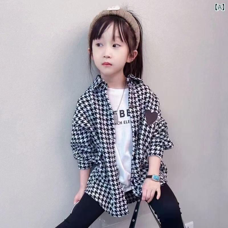 シャツ ガールズ 千鳥格子 春秋 アウター 子供 中大童 チェック柄 Vネック 長袖 普段着 発表会