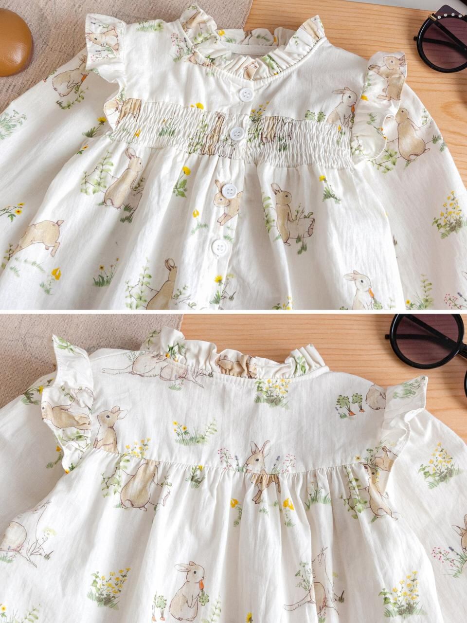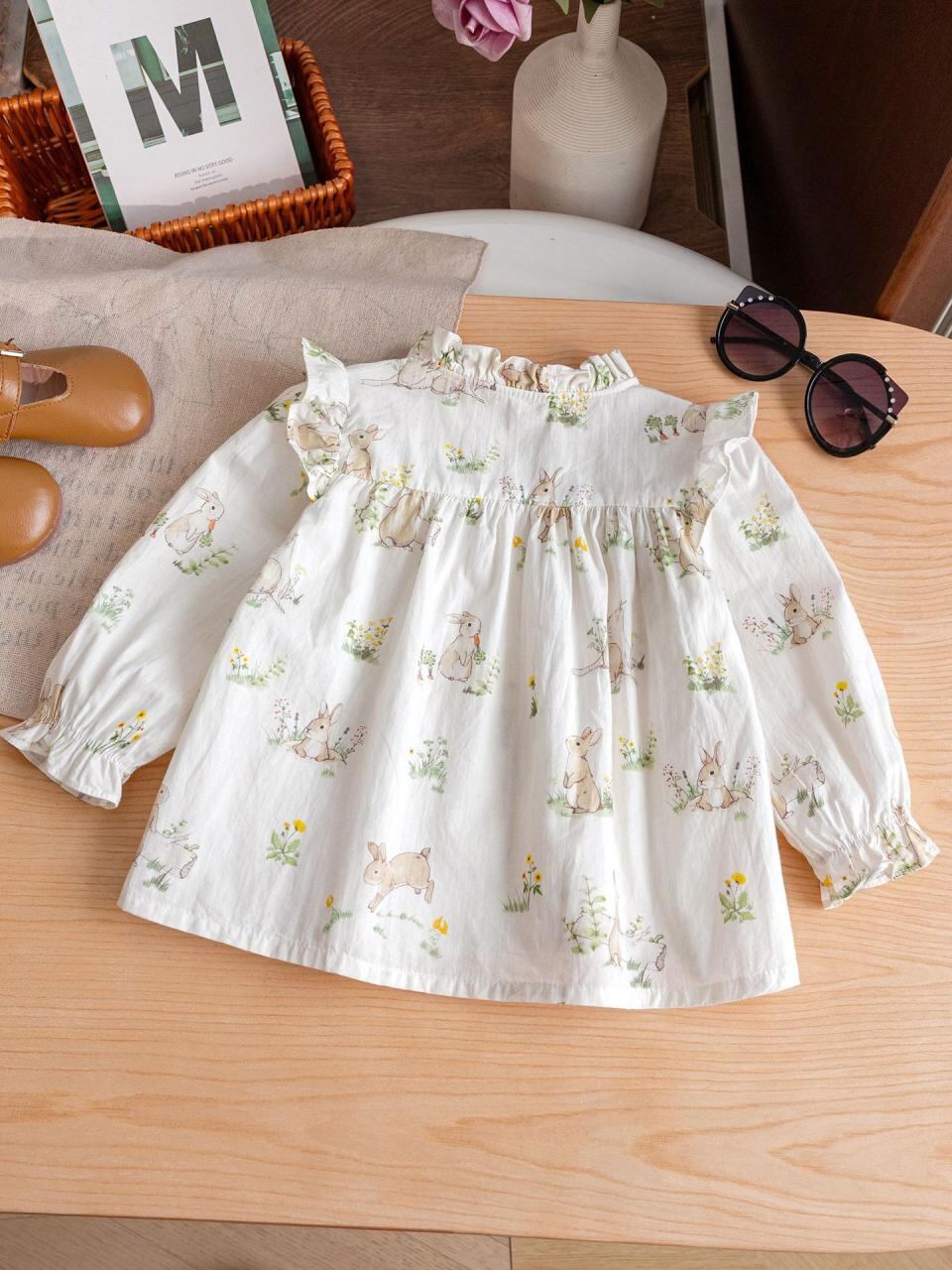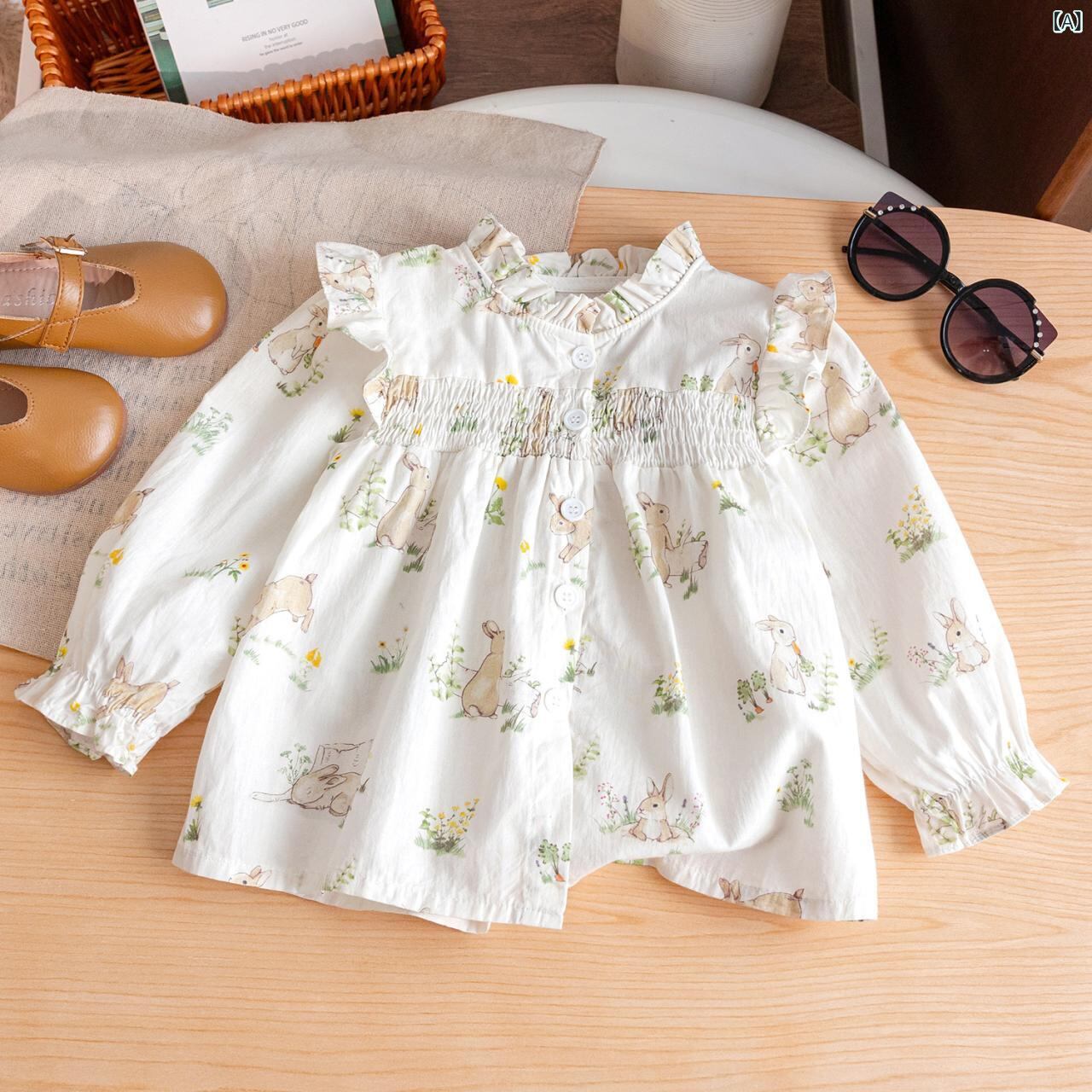 シャツ ガールズ 子供服 長袖 コットン フラワープリント 春秋 かわいい 立襟 トップス ベージュ ピンク グリーン 90 100 110 120 130 140
